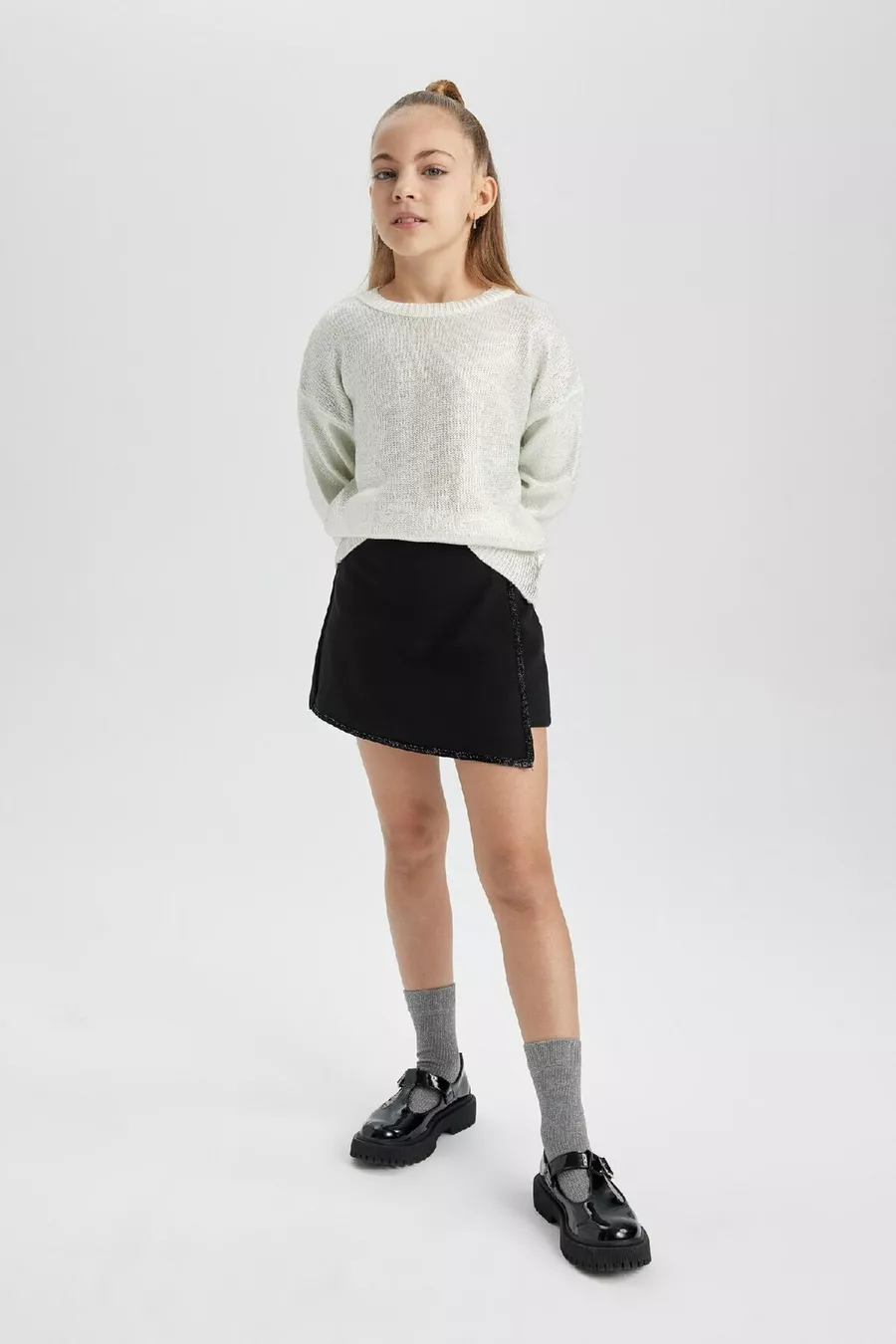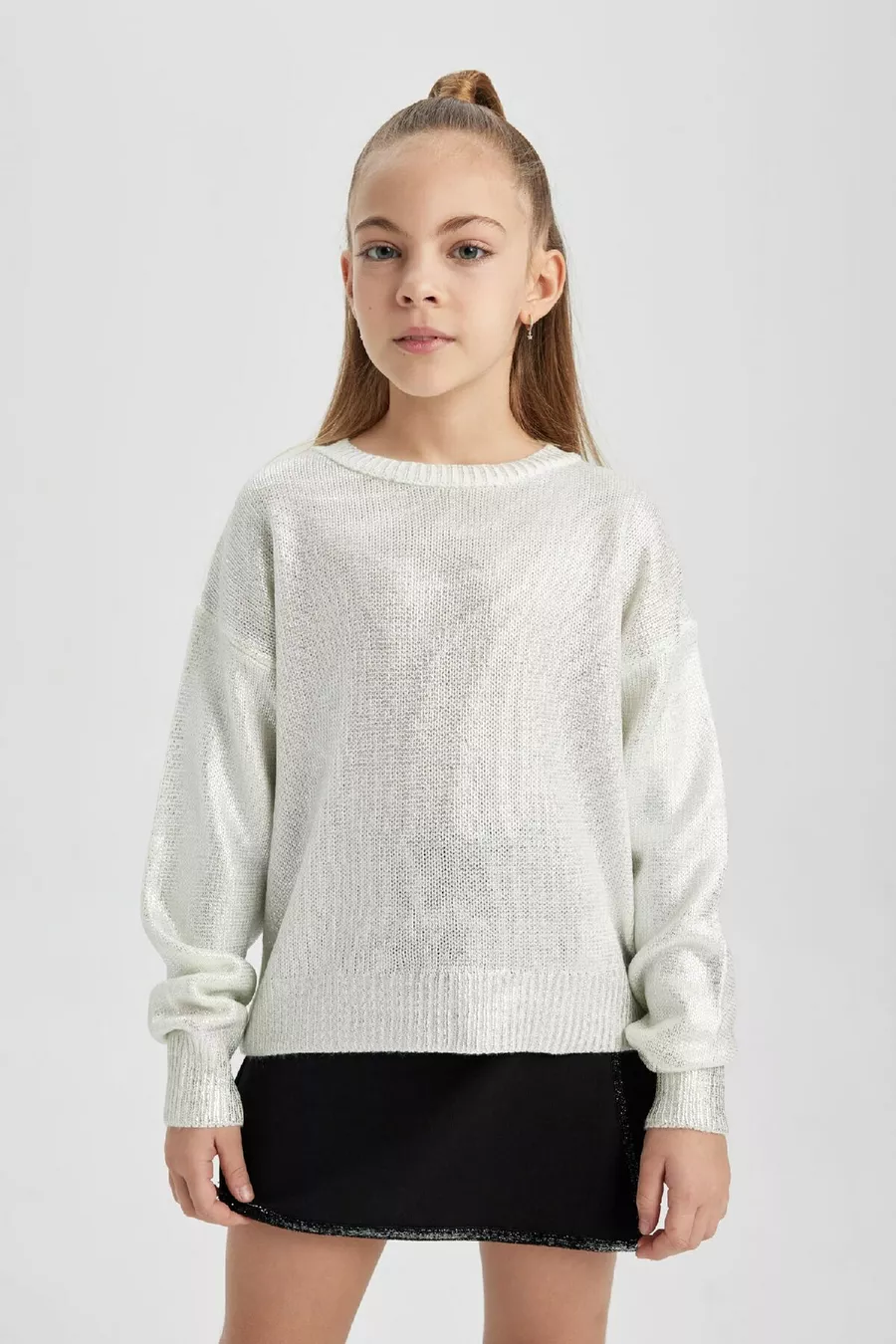 Pull en tricot à col rond pour fille wn