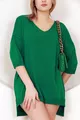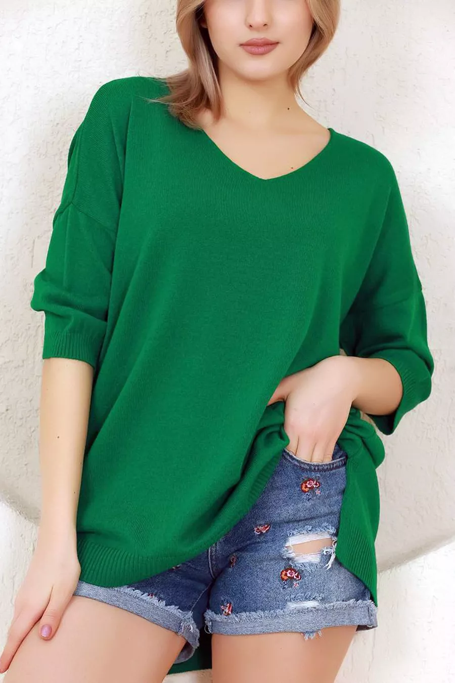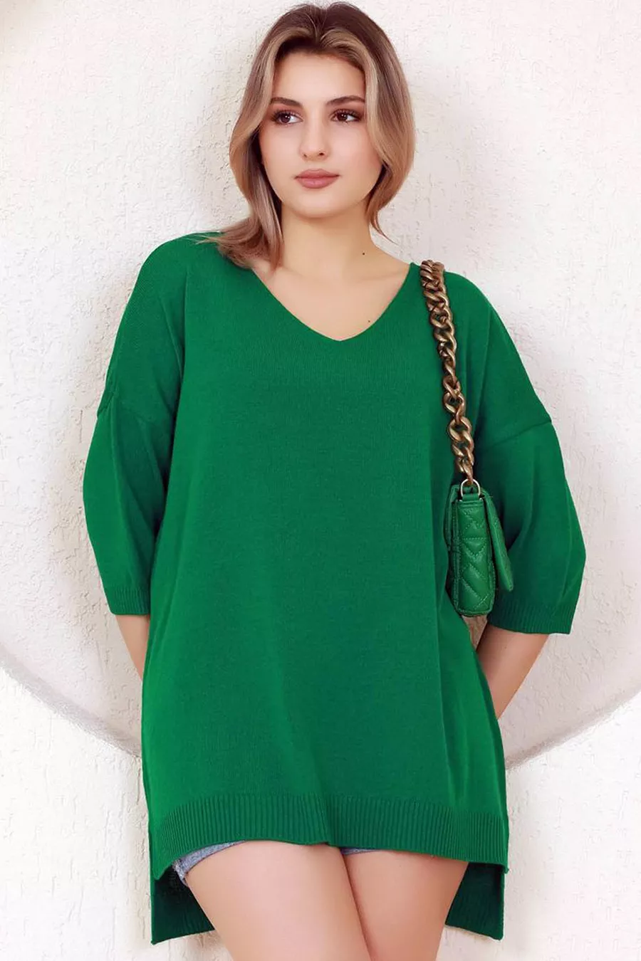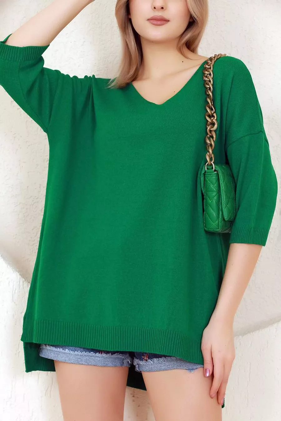 Pull-over basique en tricot ample, col en V, manches mi-longues, dos long, devant court avec fentes, coupe décontractée, saisonnier