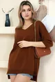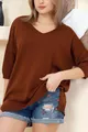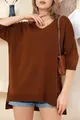 Pull-over basique en tricot ample, col en V, manches mi-longues, dos long, devant court avec fentes, coupe décontractée adaptée à toutes les saisons