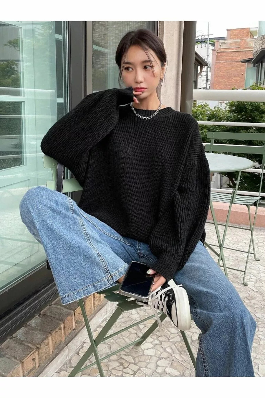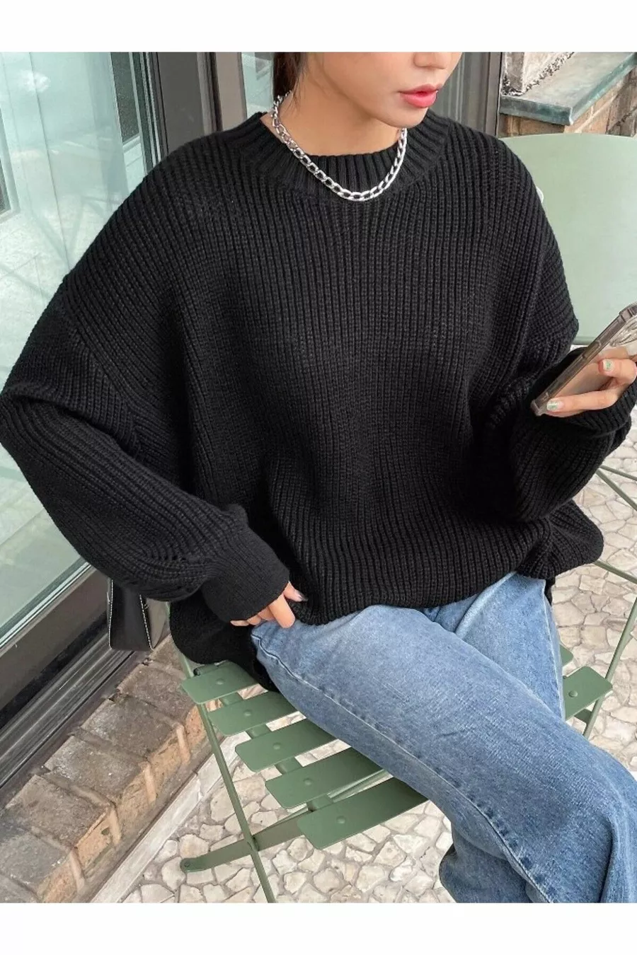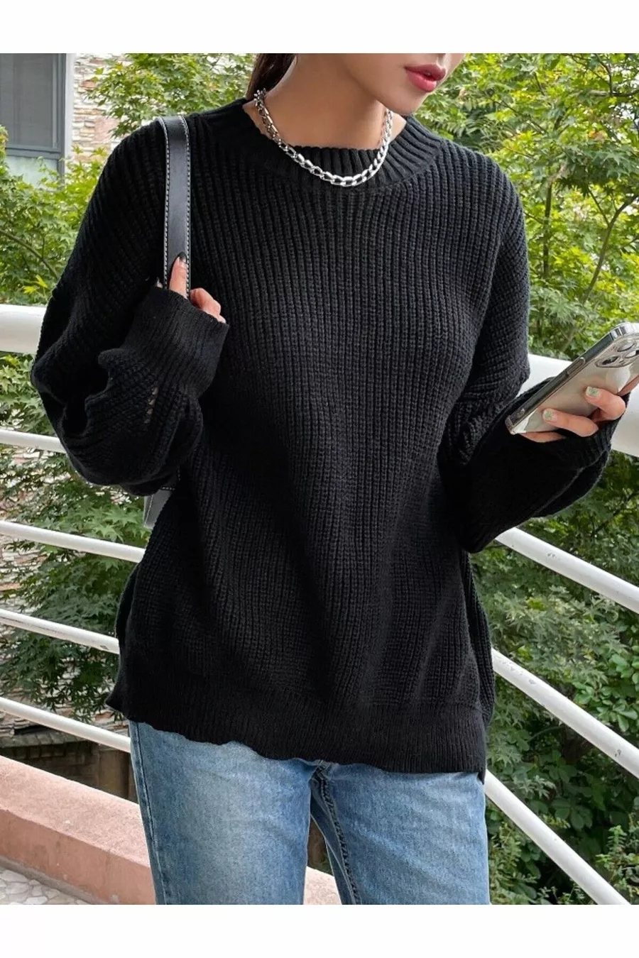 Pull oversize en maille noire pour femme Thessalonique, pull pour femme