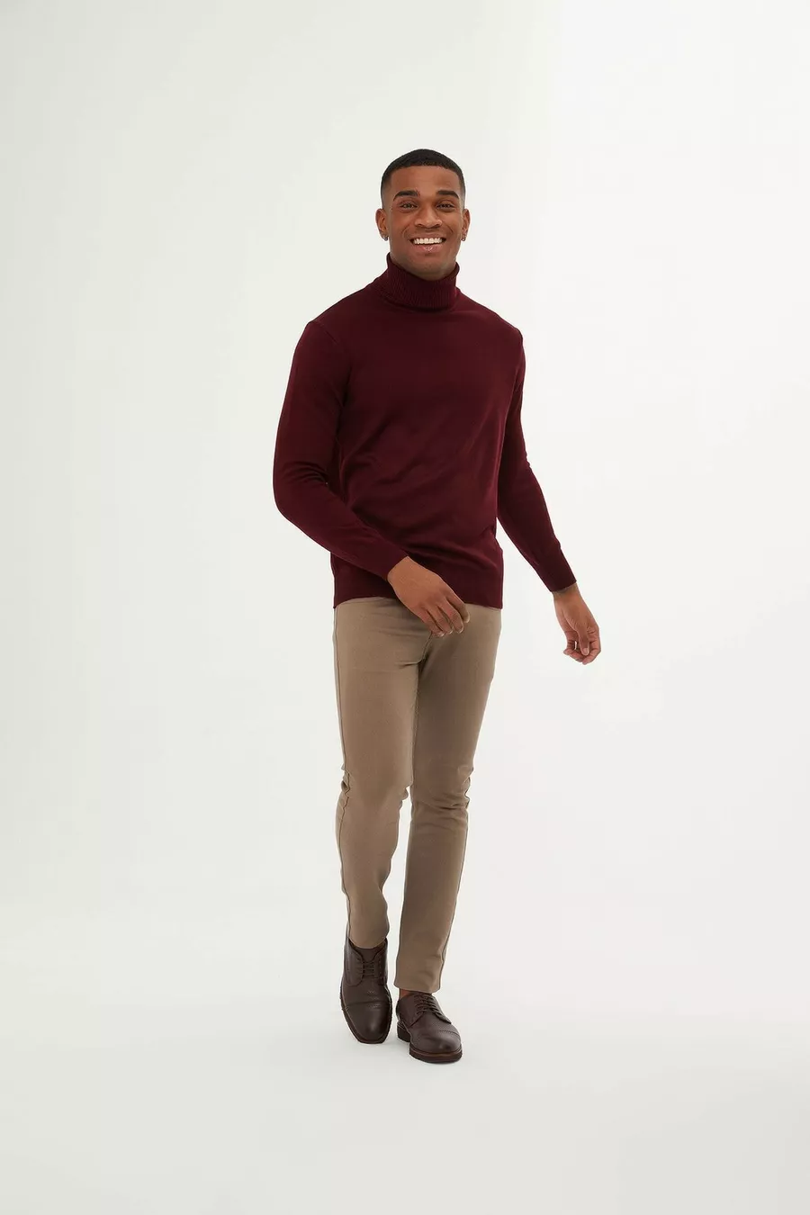 Pull tricot homme bordeaux coupe régulière col roulé