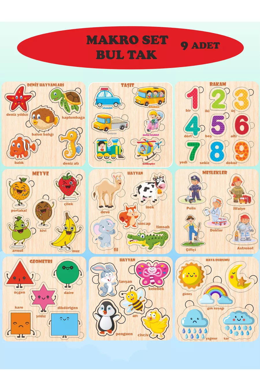 Contenu du paquet : 9 pièces Âge : 3 ans et plus Les piles sont-elles incluses dans la boîte ? : Non Langue : Turc Fonctionne-t-il avec des piles ? : Non Caractéristique : Manuel