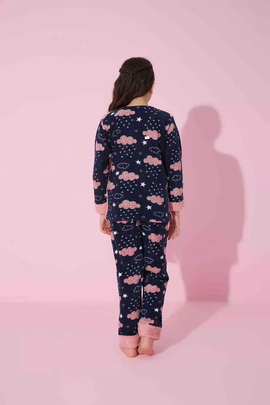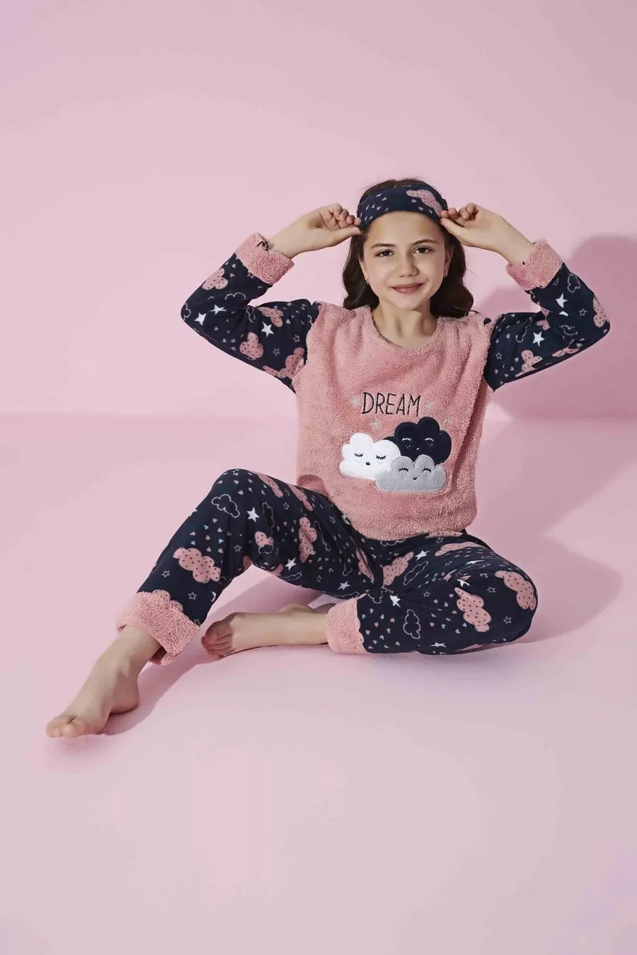 Pyjama d'hiver pour fille, ado et enfant en tissu polaire peluche à manches longues avec motif nuages, gardant la chaleur