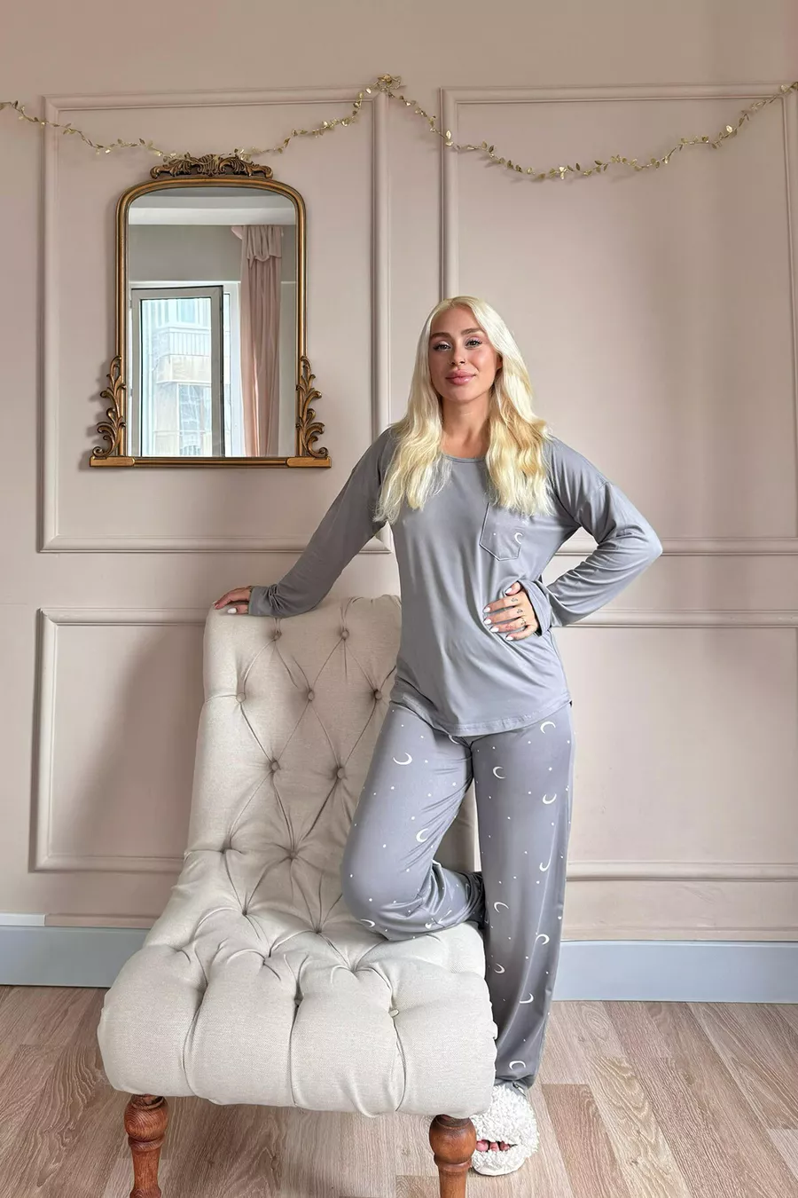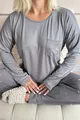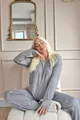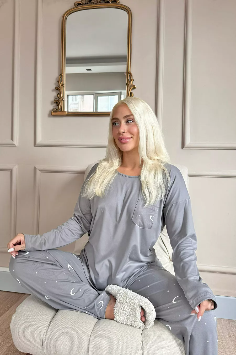 Pyjama long pour femme en bambou avec motif de lune et d'étoile anthracite