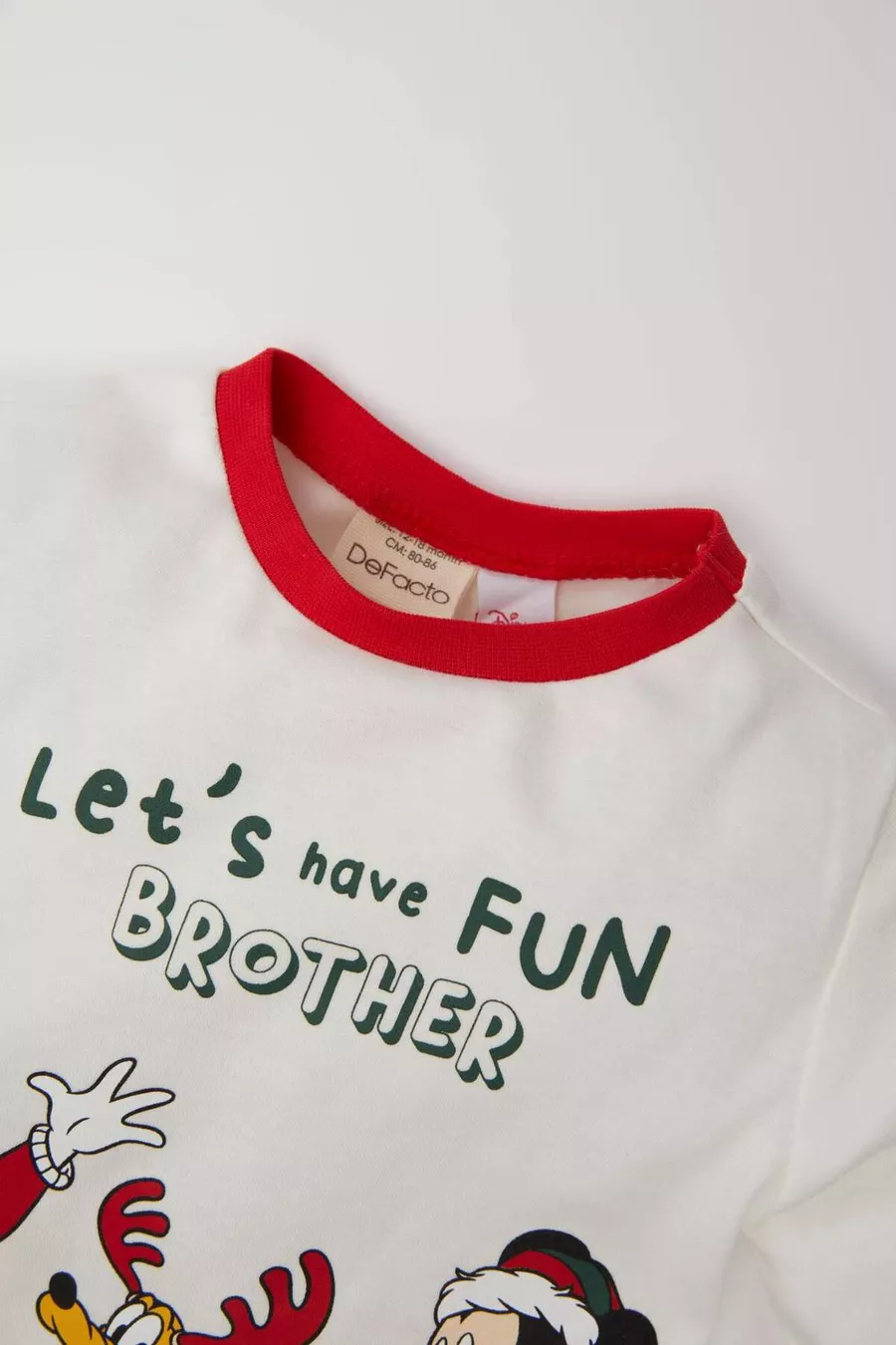 Pyjama pour bébé garçon Disney Mickey & Minnie sur le thème de Noël, haut à manches longues à col rond, taille élastique