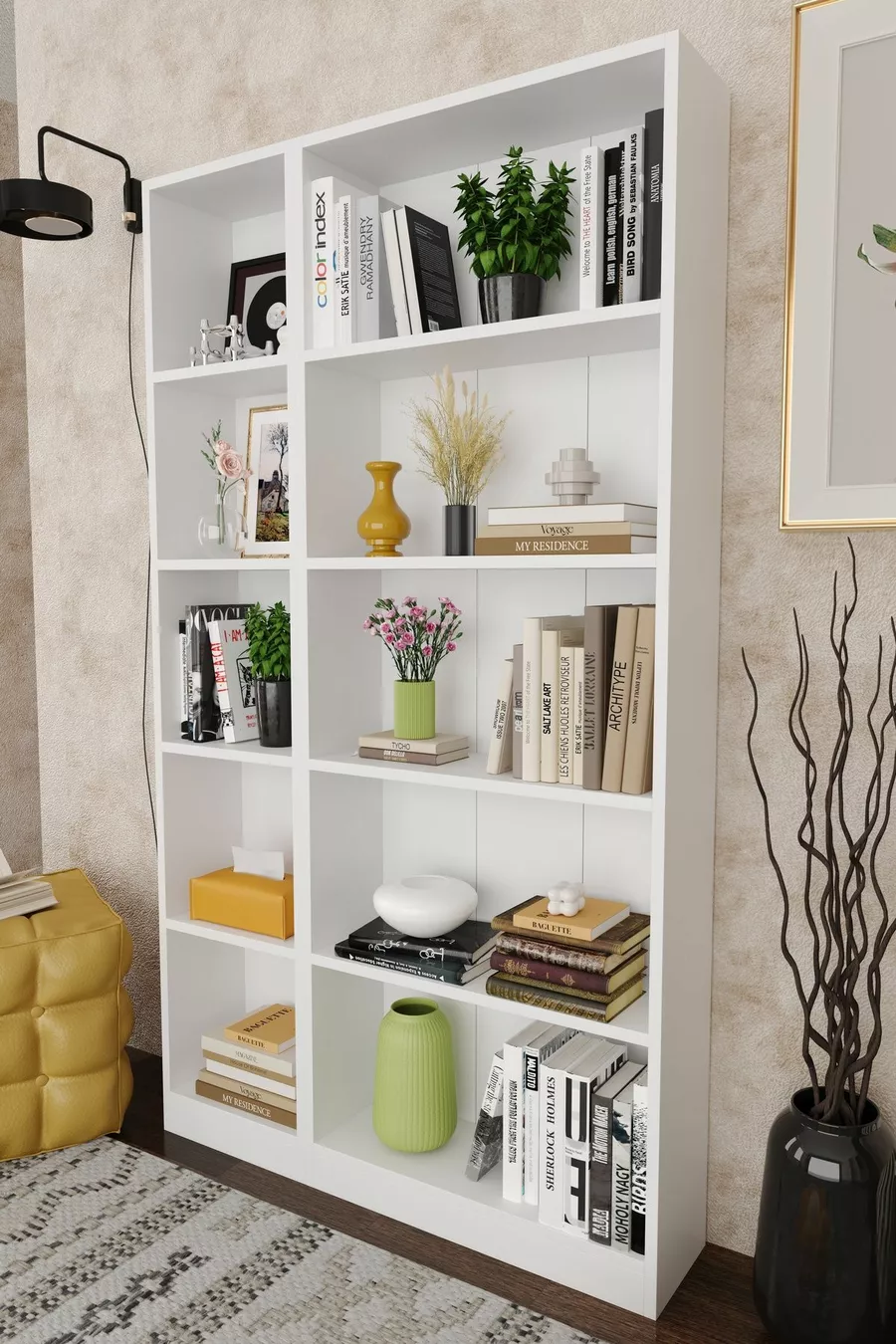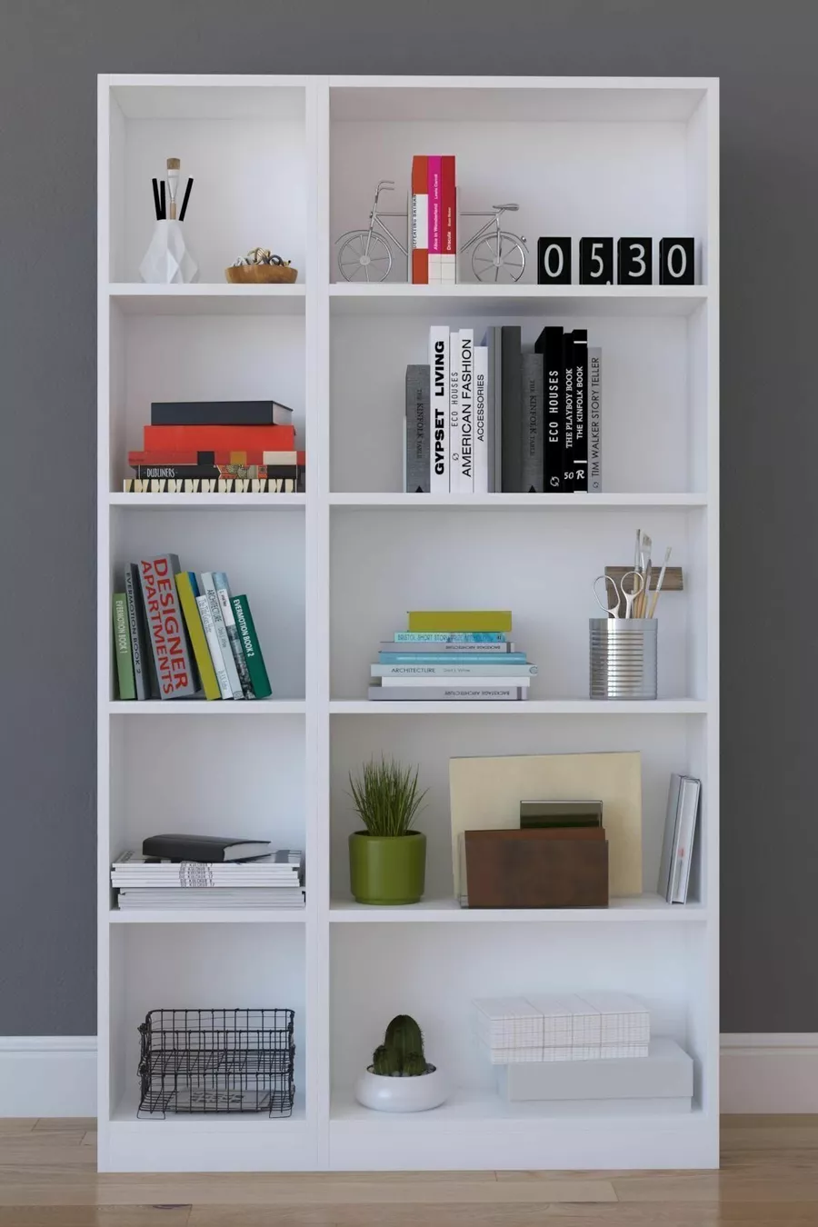Conseil : Classique Matériau : Aggloméré Couleur : Blanc Hauteur : 169 cm Largeur : 93 cm Profondeur : 20 cm Nombre d'étagères : 10 Matériau du corps : Aggloméré Style : Classique Thème / Style : Scandinave Caractéristique : Avec étagères