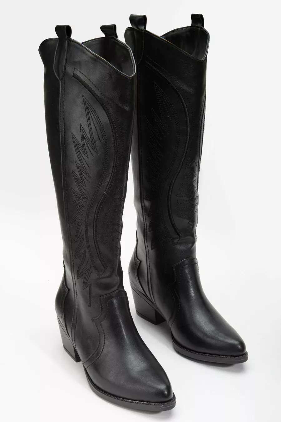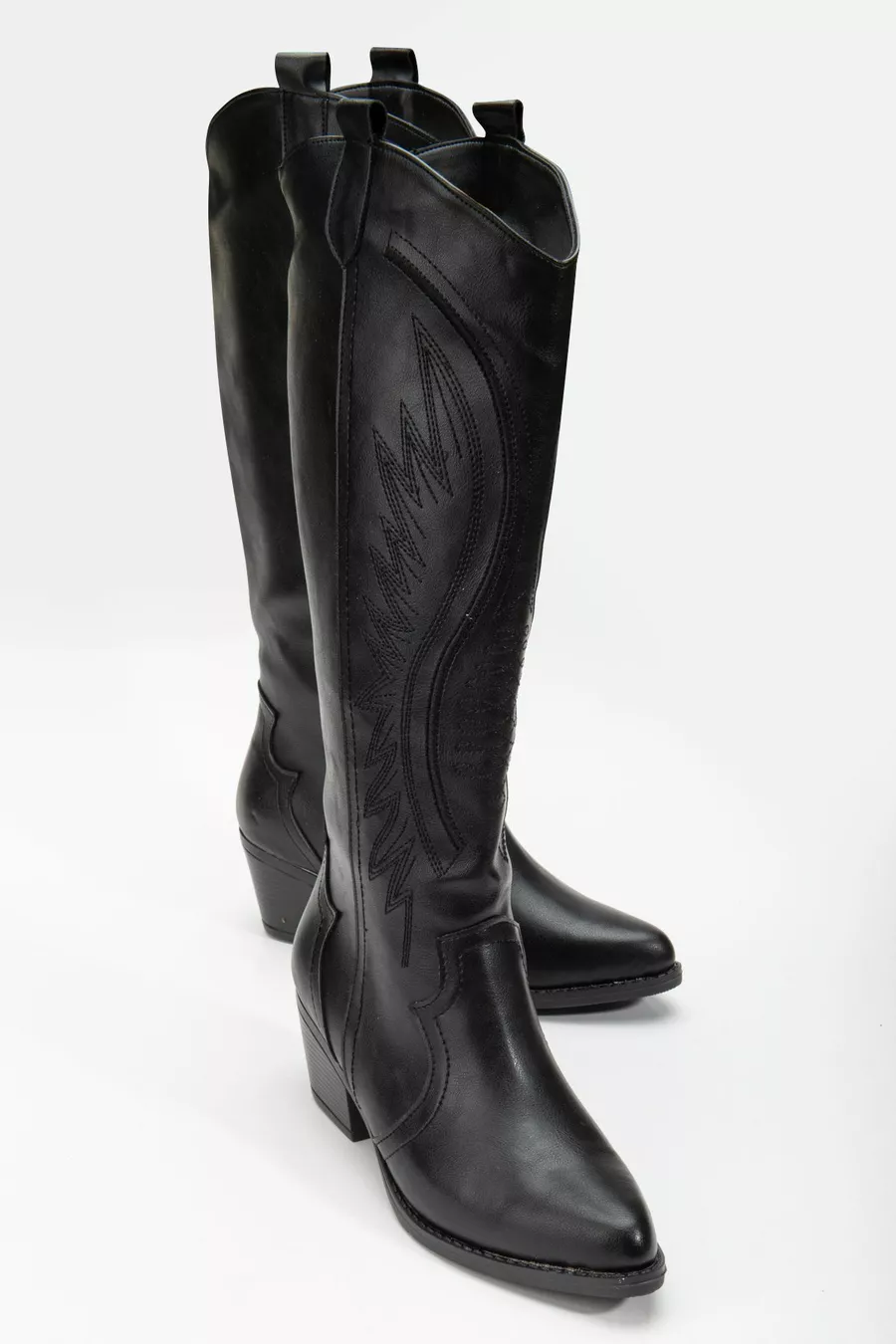 RISSOLI Noir Mat Skin Brodé Western Cowboy Cow-girl Bottes Bottes