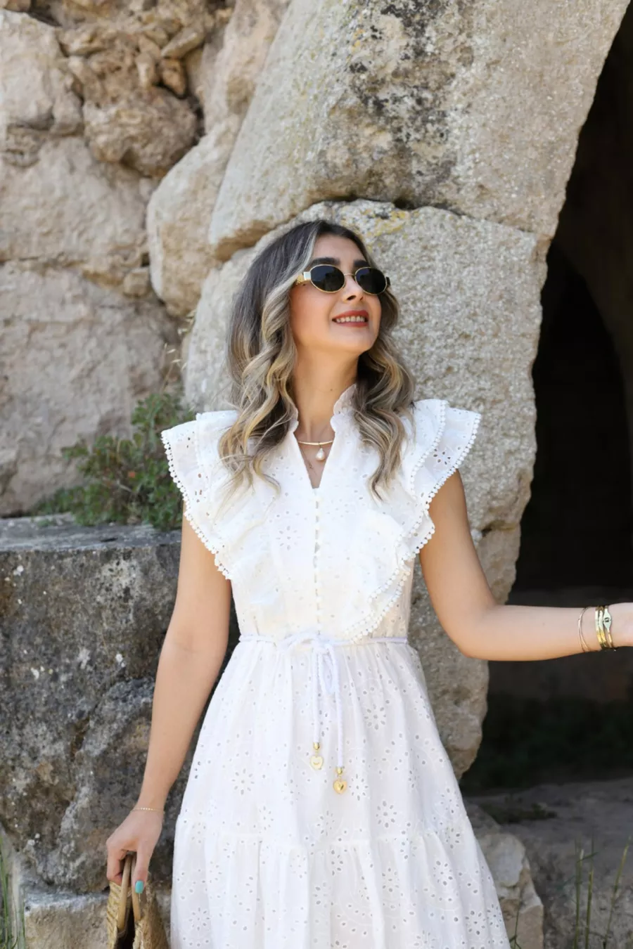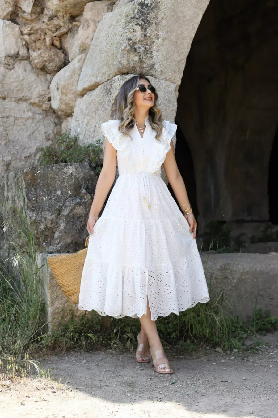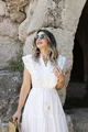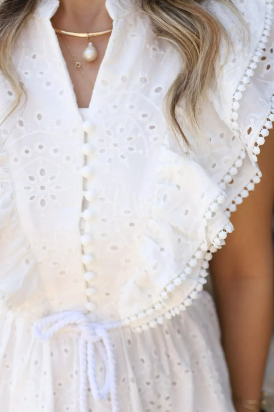 Robe blanche à volants devant sans manche avec broderie anglaise