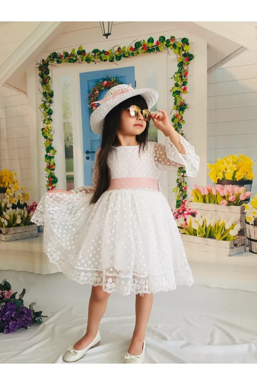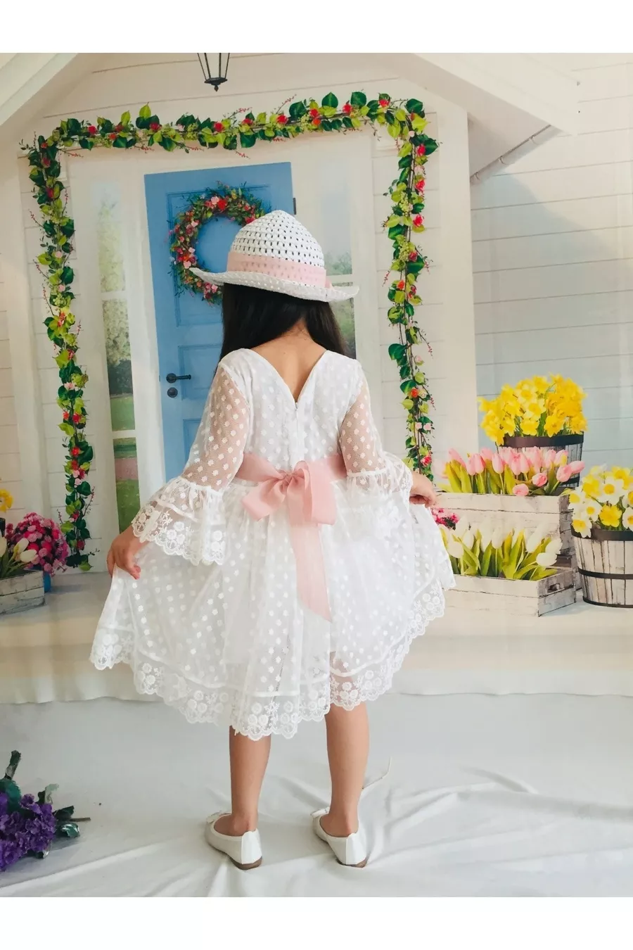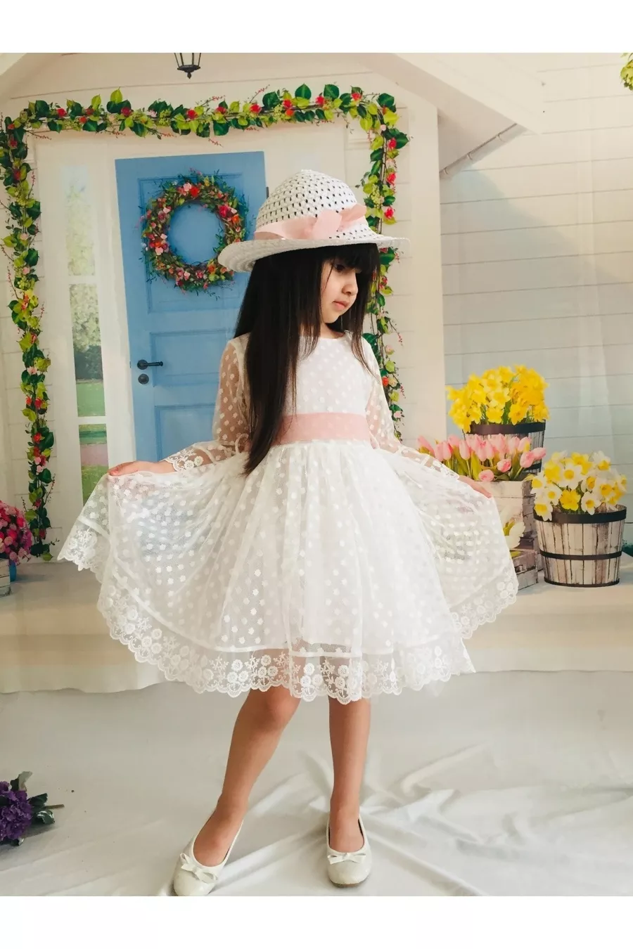 Robe blanche pour fille avec chapeau, en dentelle et guipure, robe spéciale pour anniversaire