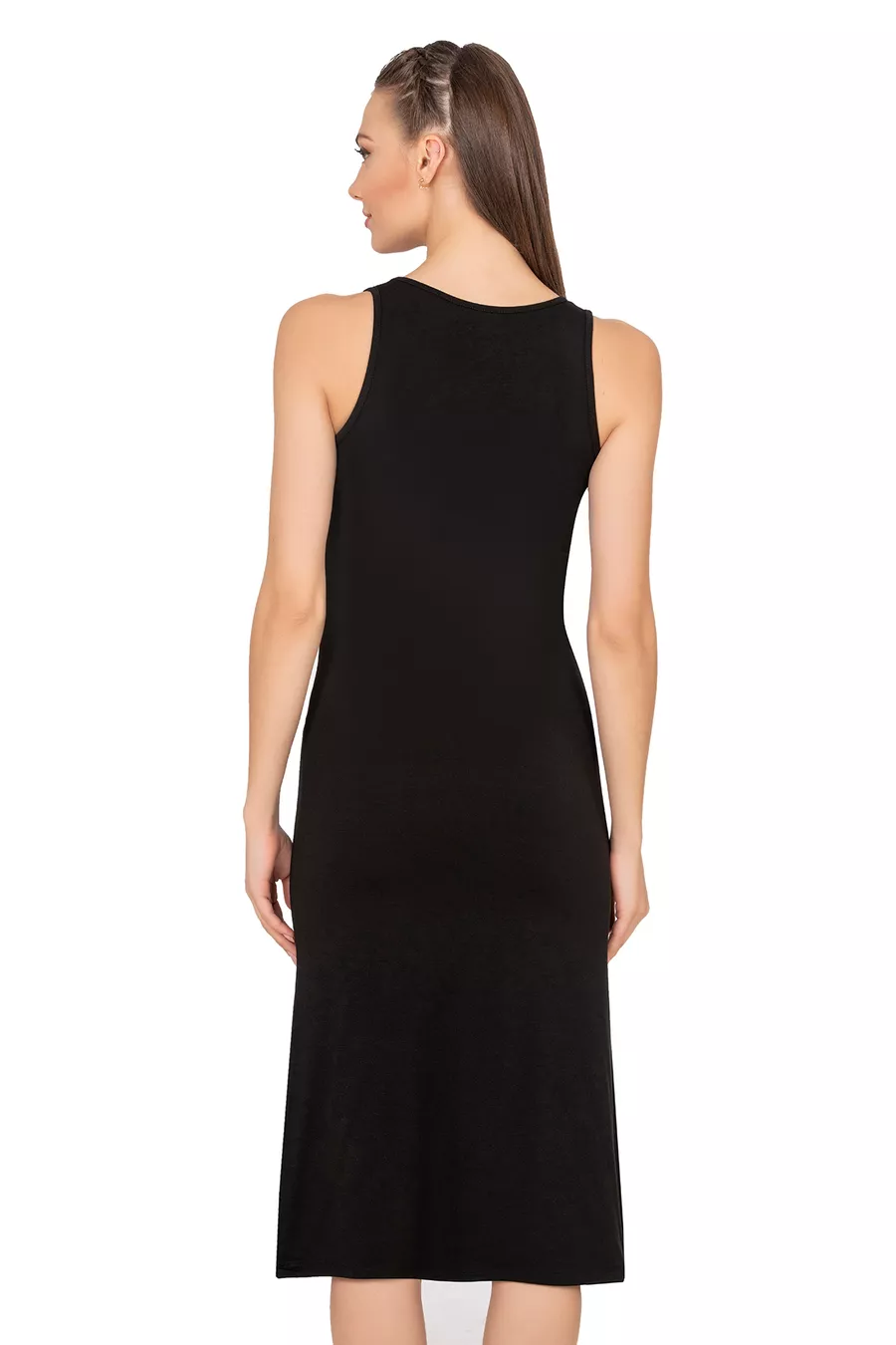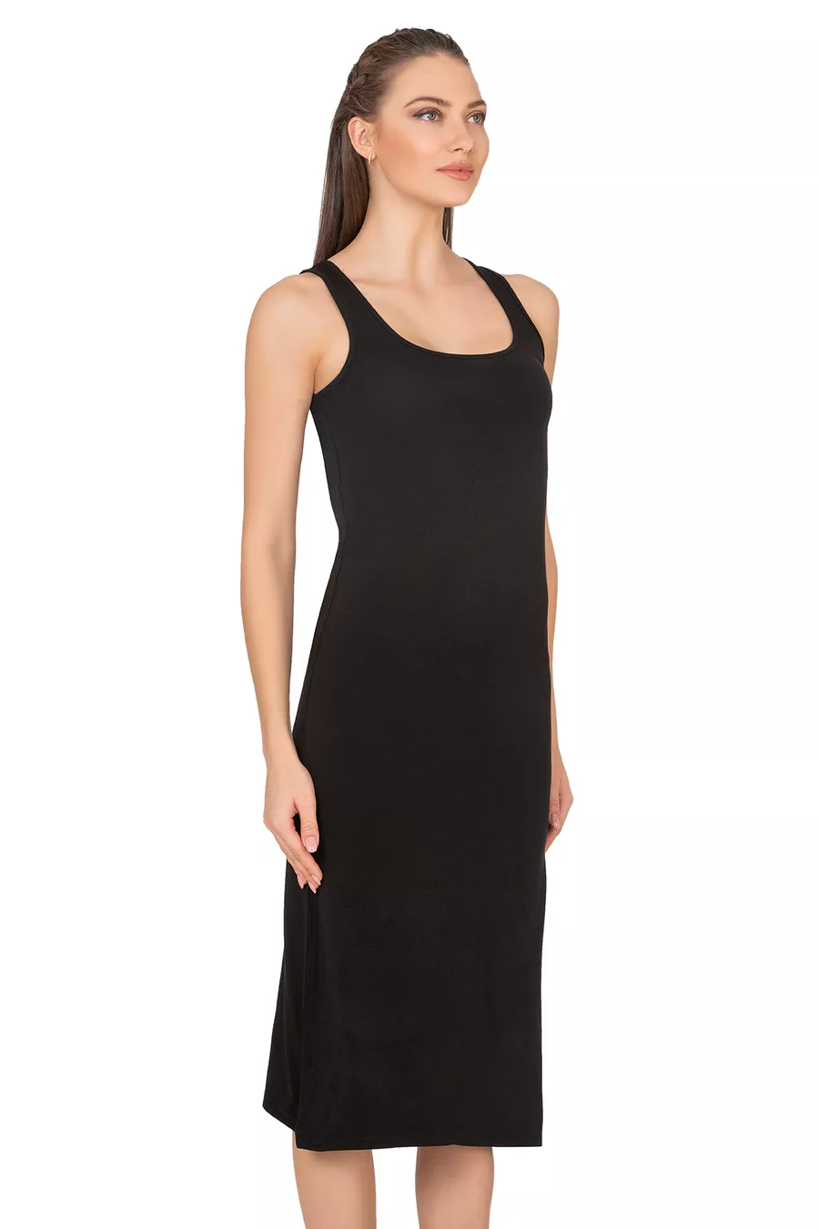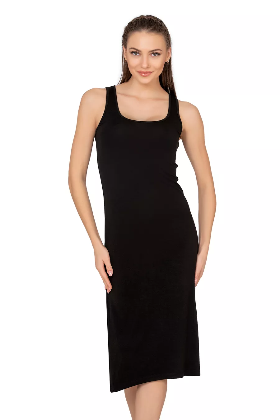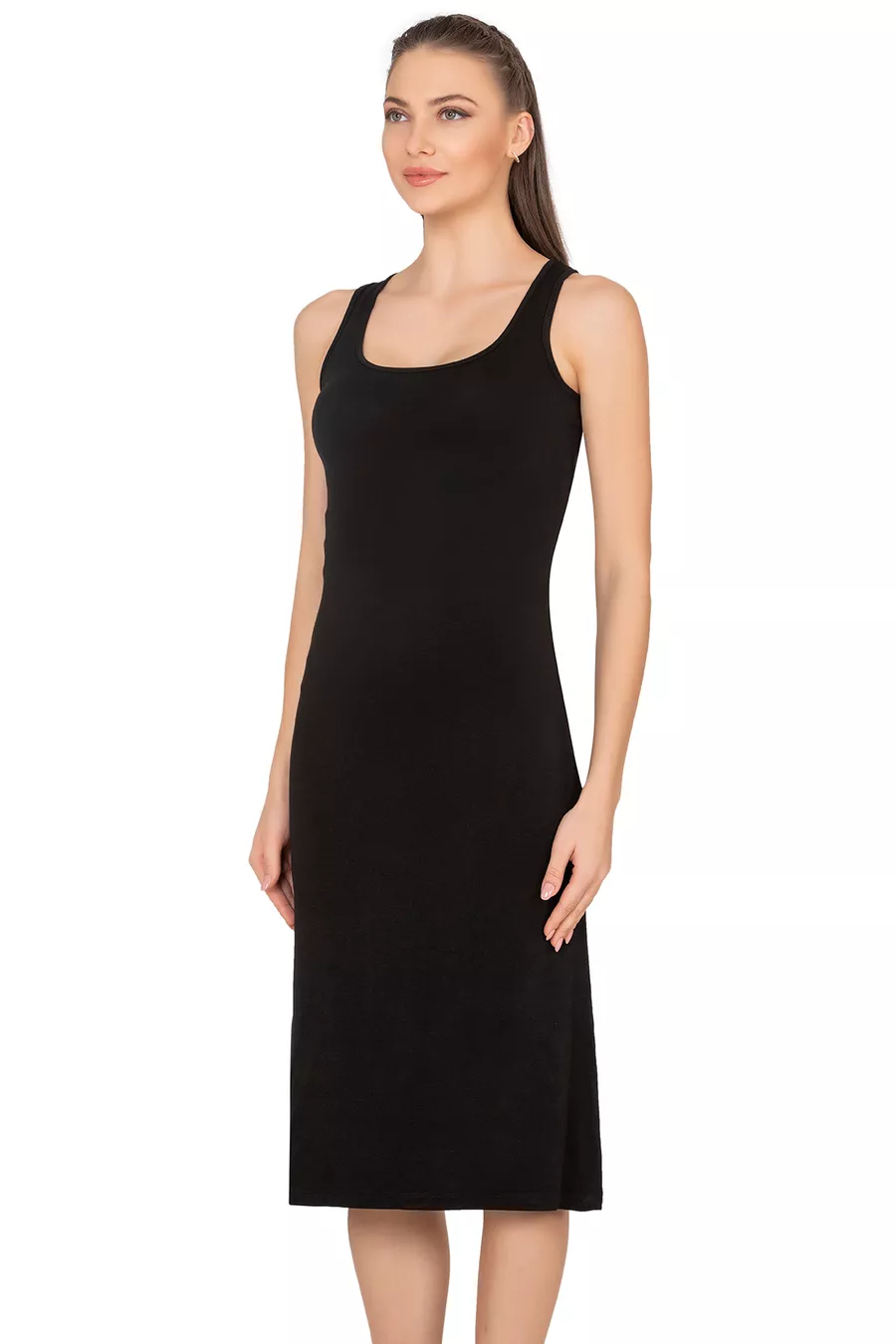 Robe combinaison femme Özkan en viscose premium, tissu long sous le genou, élastique et confortable, bretelles épaisses, jupe