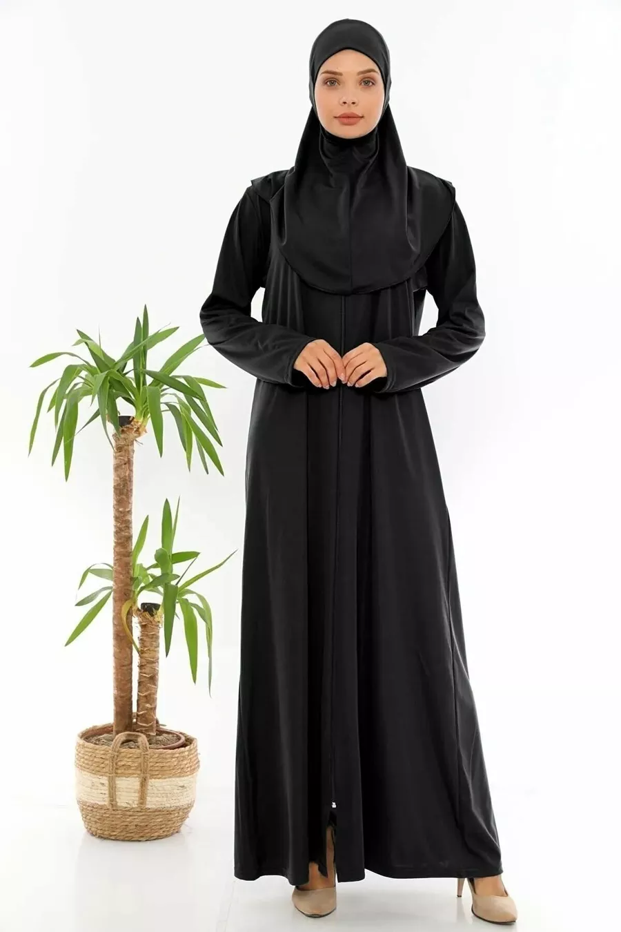 Robe de prière noire en une seule pièce avec fermeture éclair, anti-dérapante
