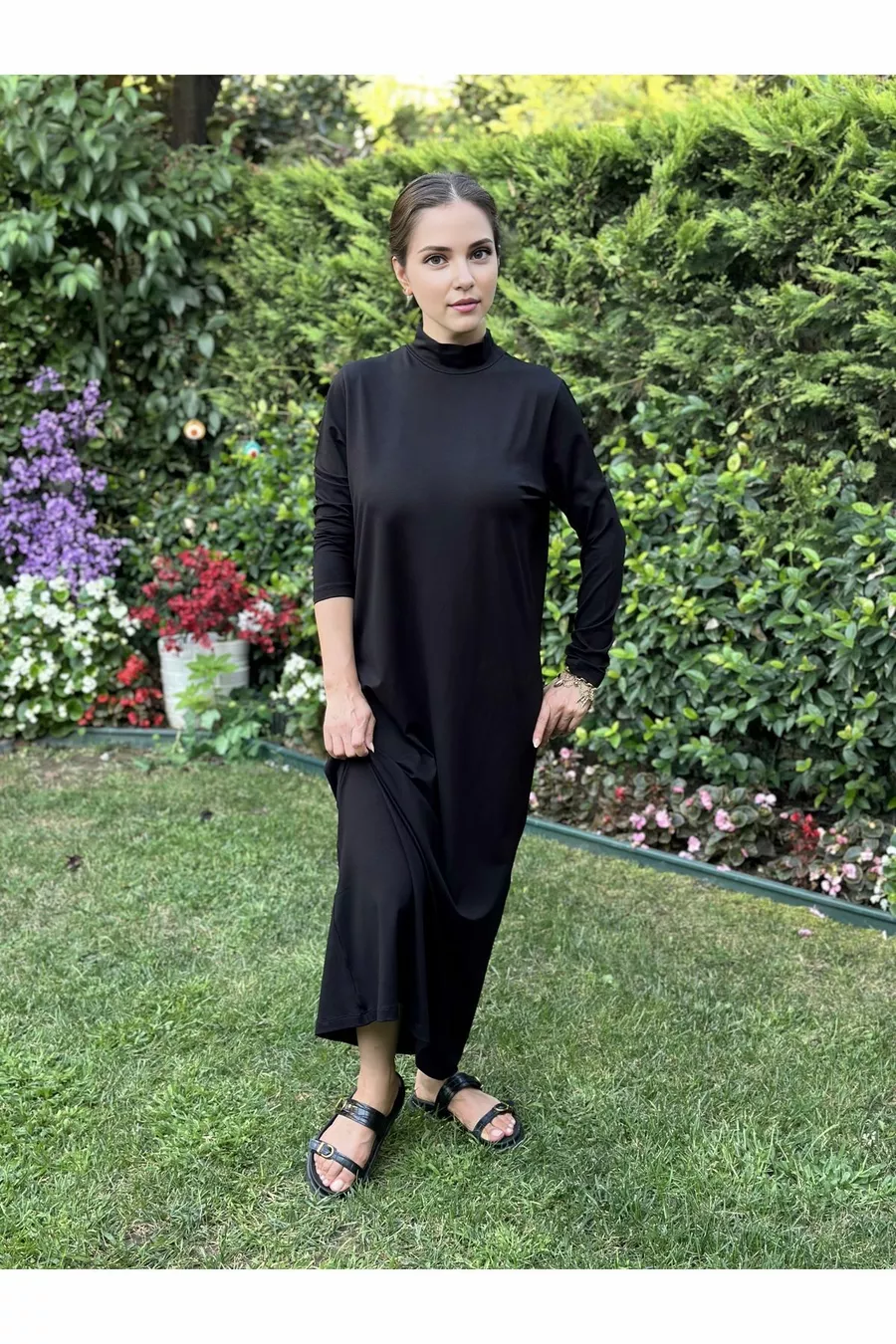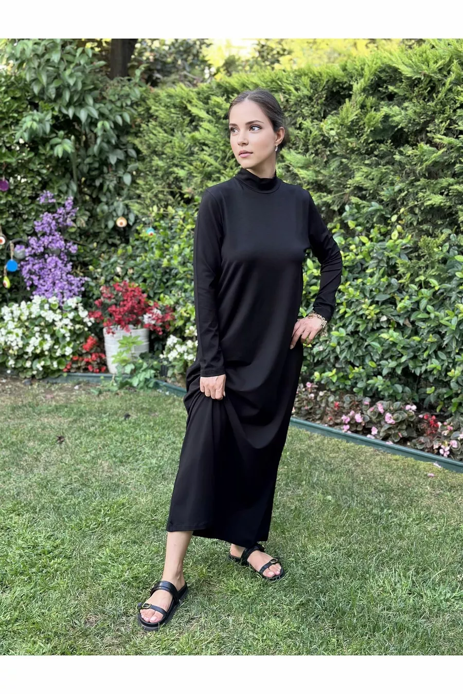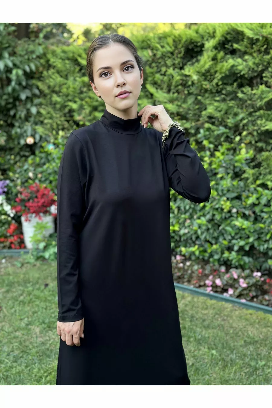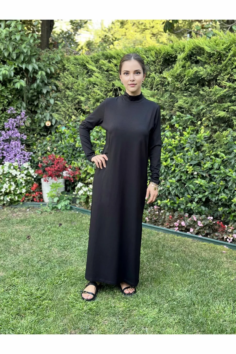 Robe de base en coton et viscose à col droit pour sous-vêtement de hijab, doublure intérieure, robe longue en coton