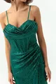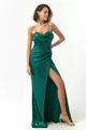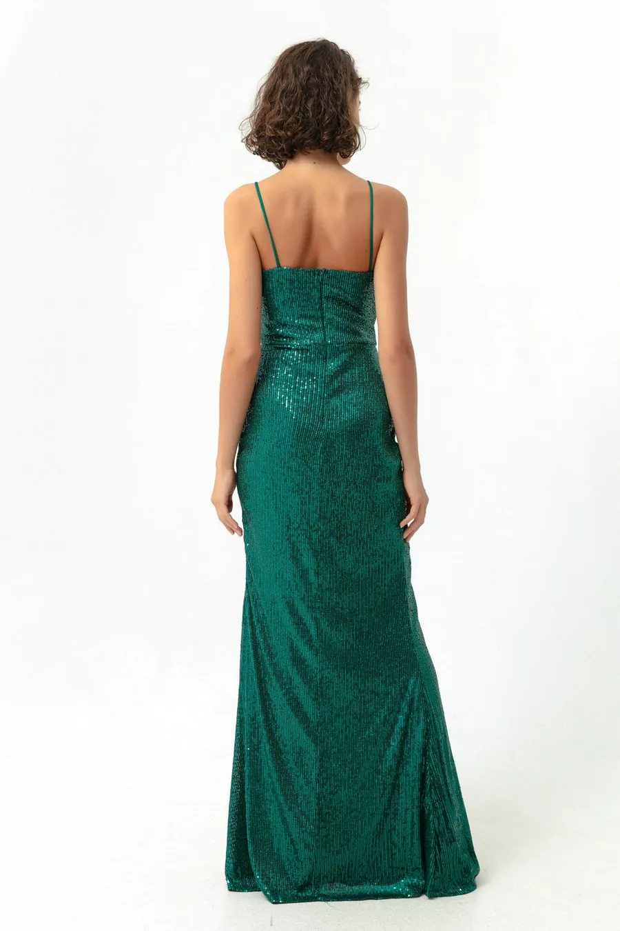 Robe de soirée longue corset de ballet vert émeraude pour femme à fentes pailletées détaillées
