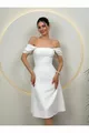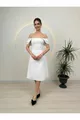 Robe de soirée blanche midi détaillée en perles Robe de graduation