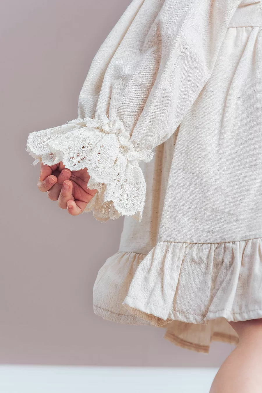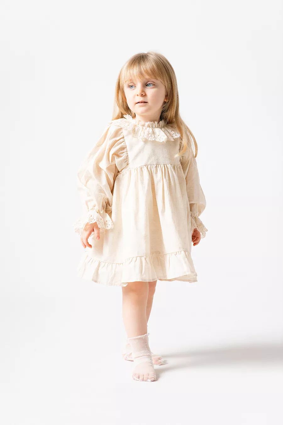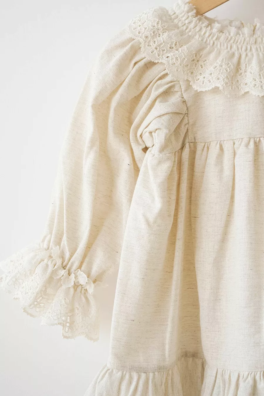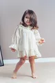 Robe en lin pour fille Sarah avec col en dentelle et manches ballon à poignets (beige)
