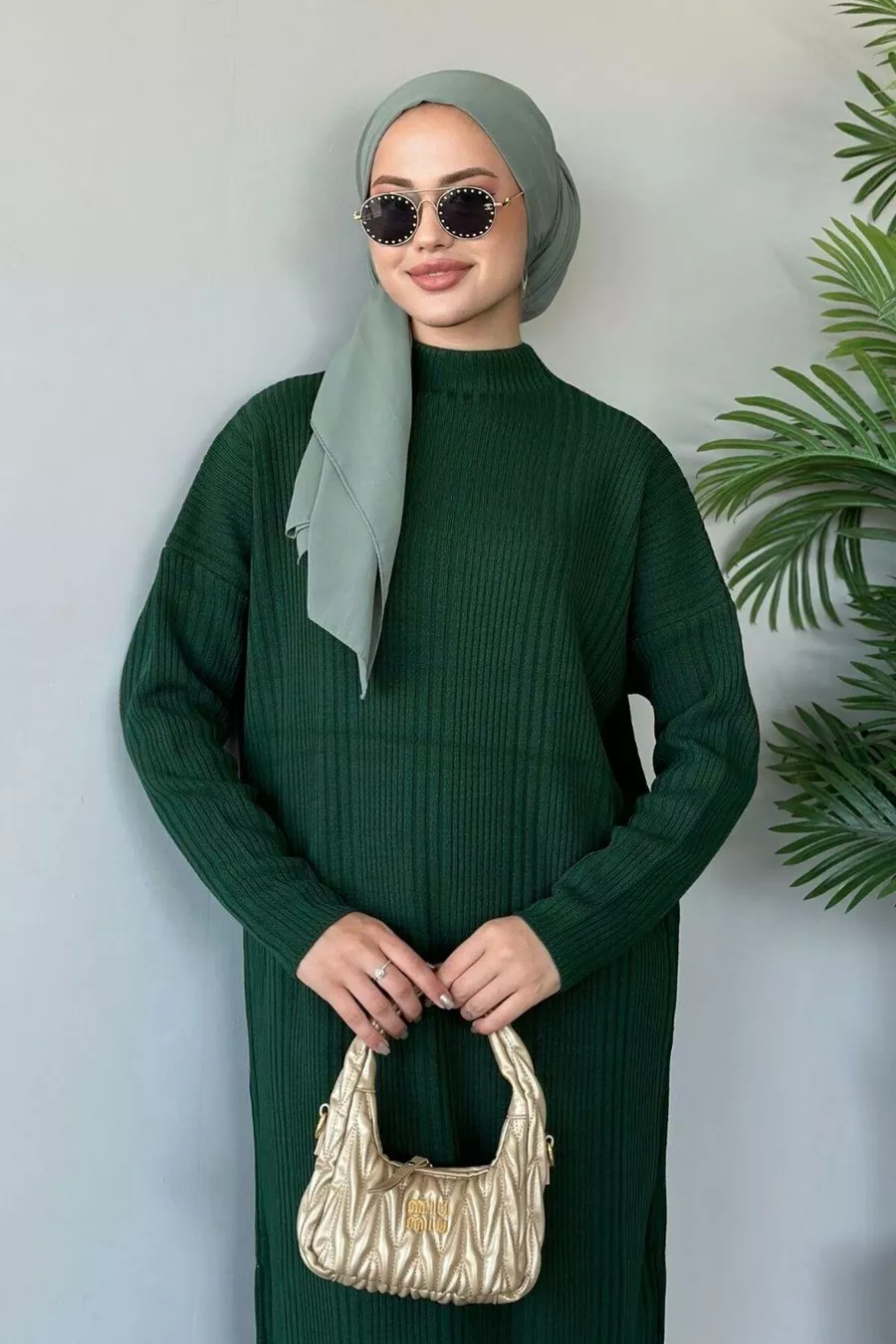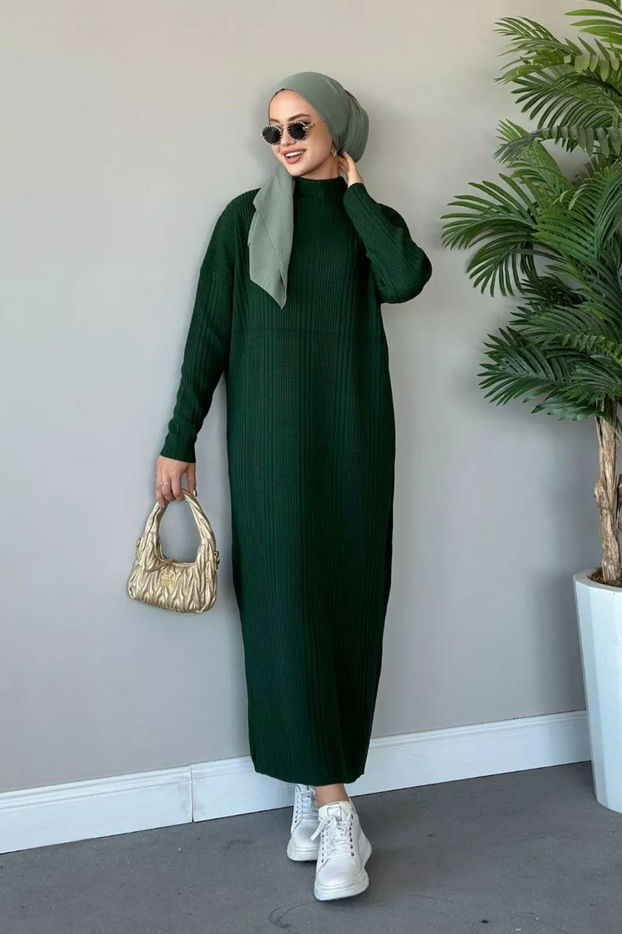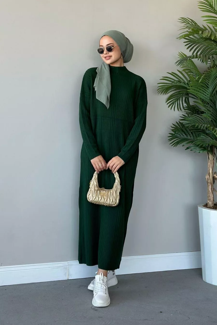 Robe en tricot côtelé verte