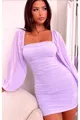 Robe lilas à col carré sableux drapé, manches en mousseline de soie