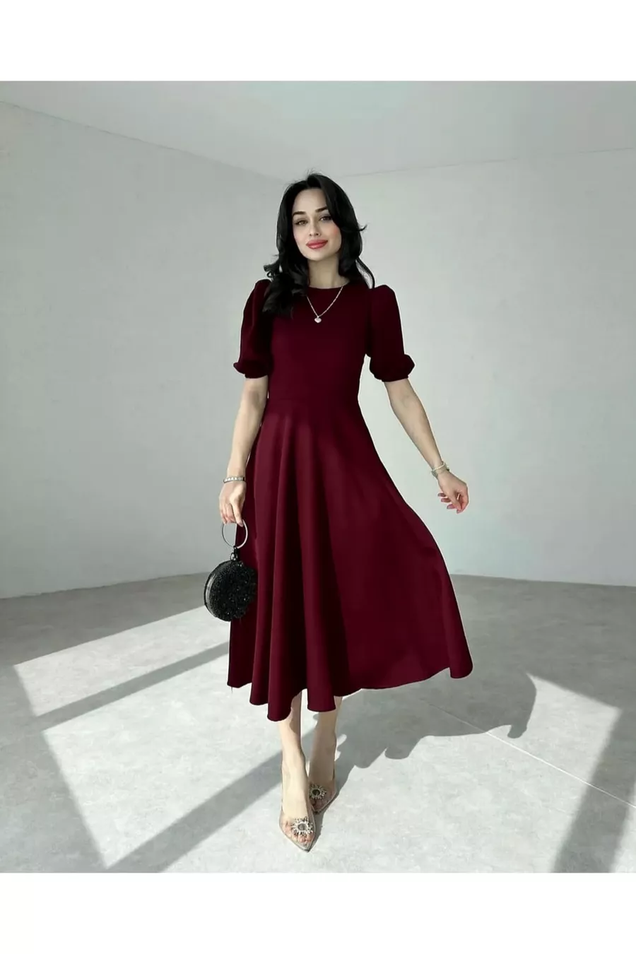 Robe mi-longue à manches pastèque bordeaux