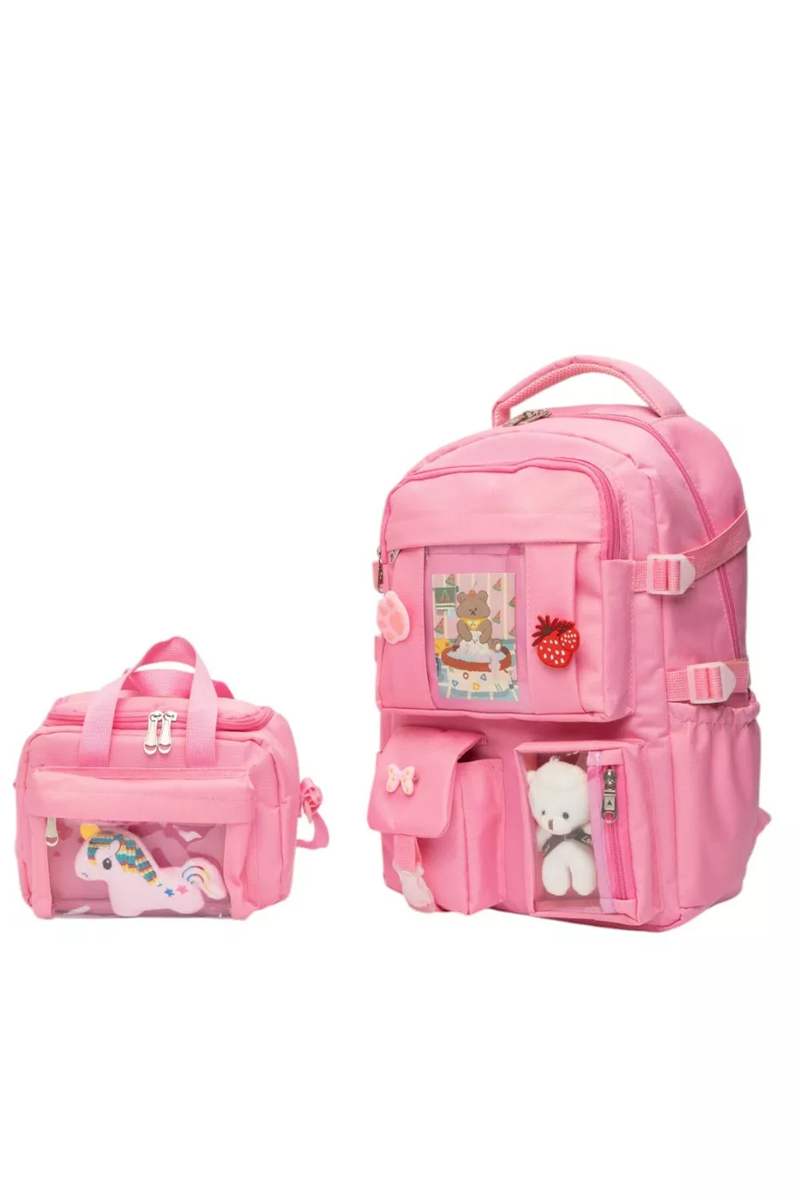 Sac d'école quotidien local de style Kawaii Kore avec accessoires complets, ensemble sac pour filles et garçons avec trousse et boîte à déjeuner