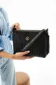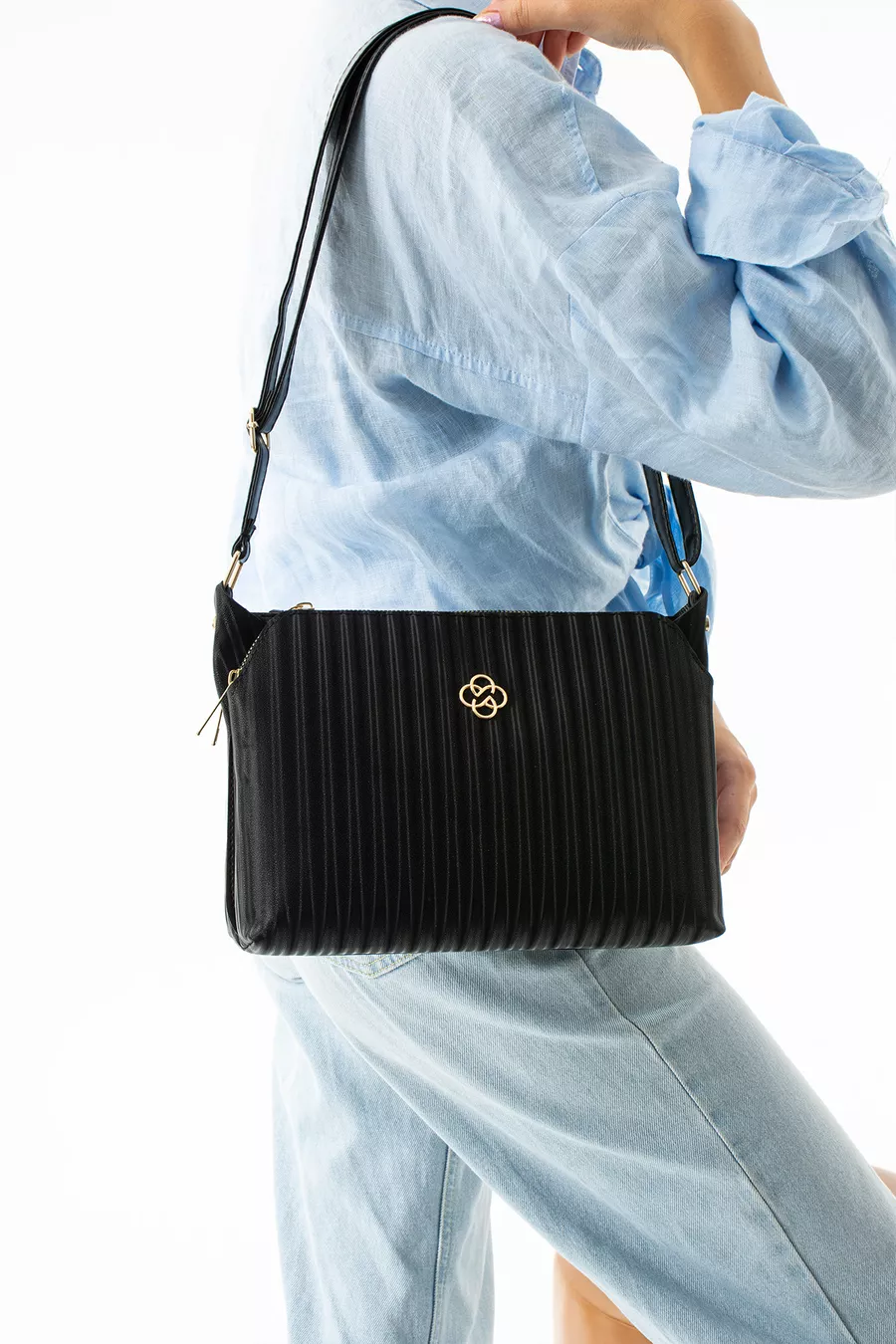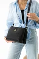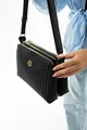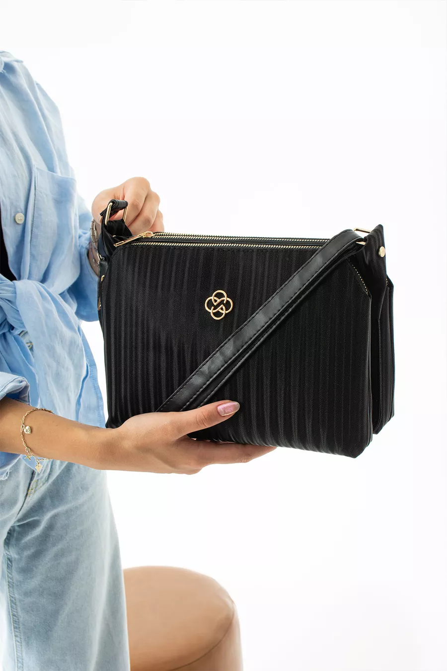 Sac de qualité en cuir vegan à rayures noires, à trois compartiments, avec bandoulière réglable à porter en travers de l'épaule