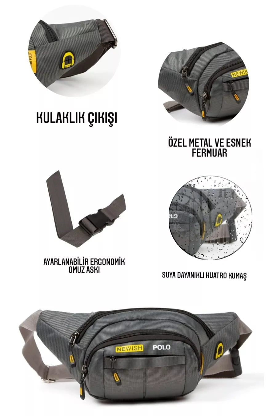 Sac Polo étanche récent avec écouteurs, sortie USB, unisexe, gris, à bandoulière croisée, ceinture, épaule et sport