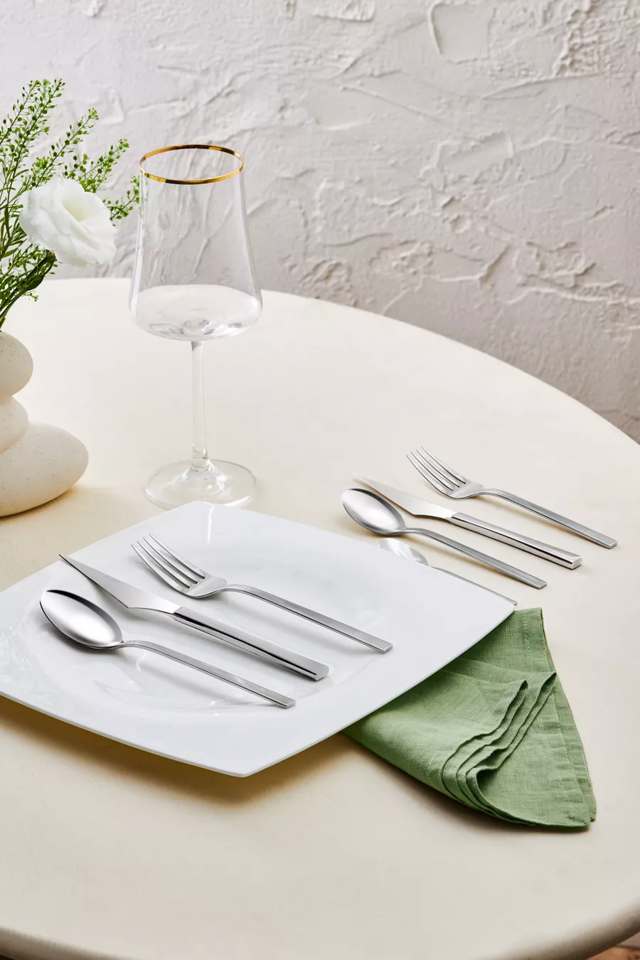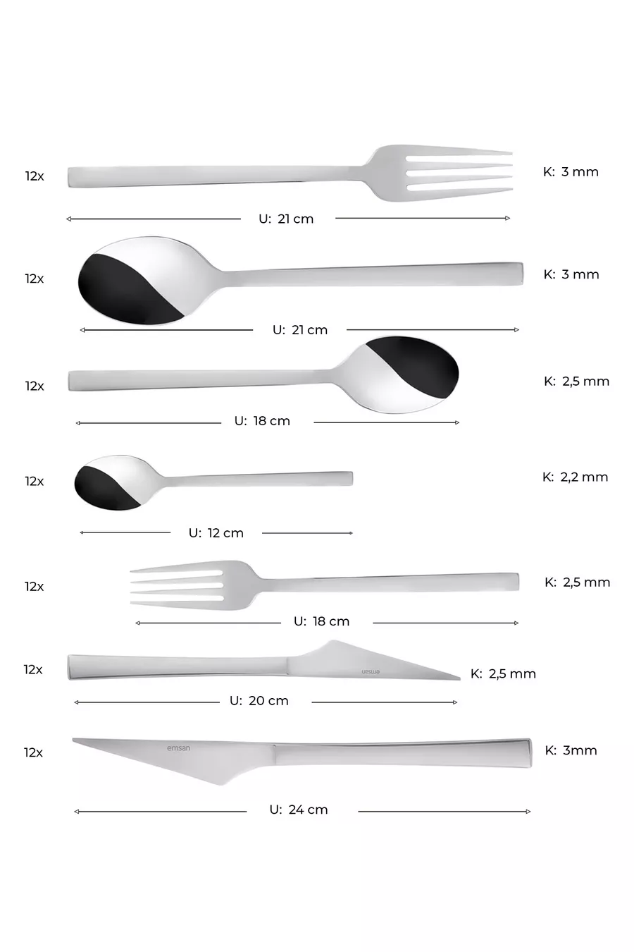 Matériau : Acier Nombre de pièces : 84 Couleur : Gris Capacité : 12 personnes Type de produit : Set de couteaux Origine : TR Durée de garantie : 2 ans Instructions d'entretien (contact alimentaire) : Compatible lave-vaisselle.