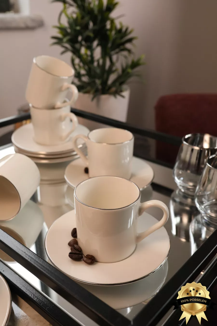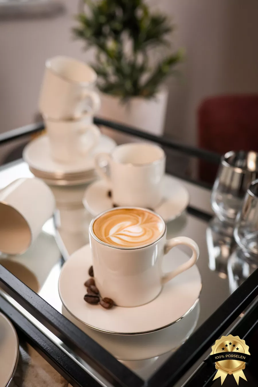 Service à café en porcelaine Hayal Platin doré pièces pour 6 personnes