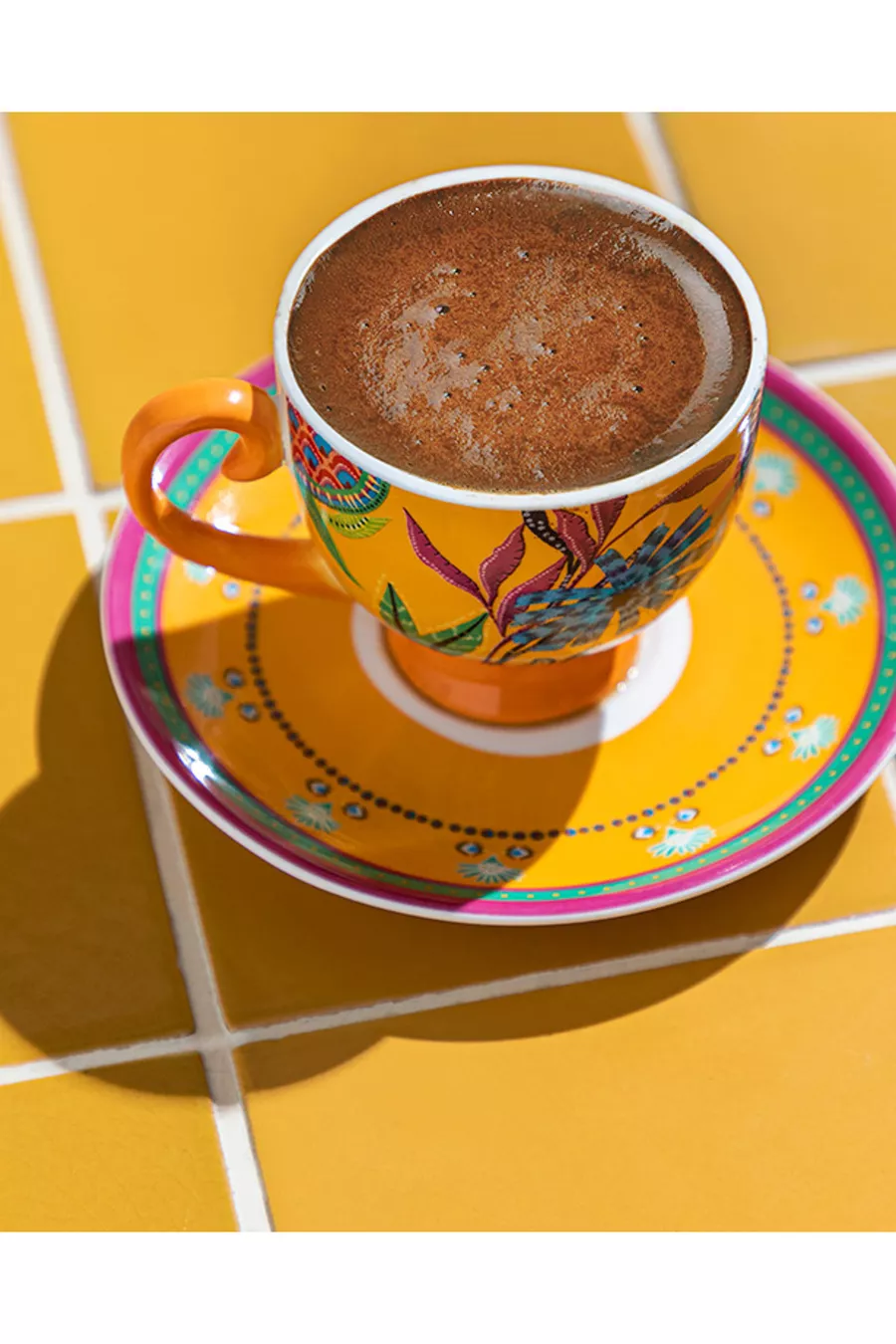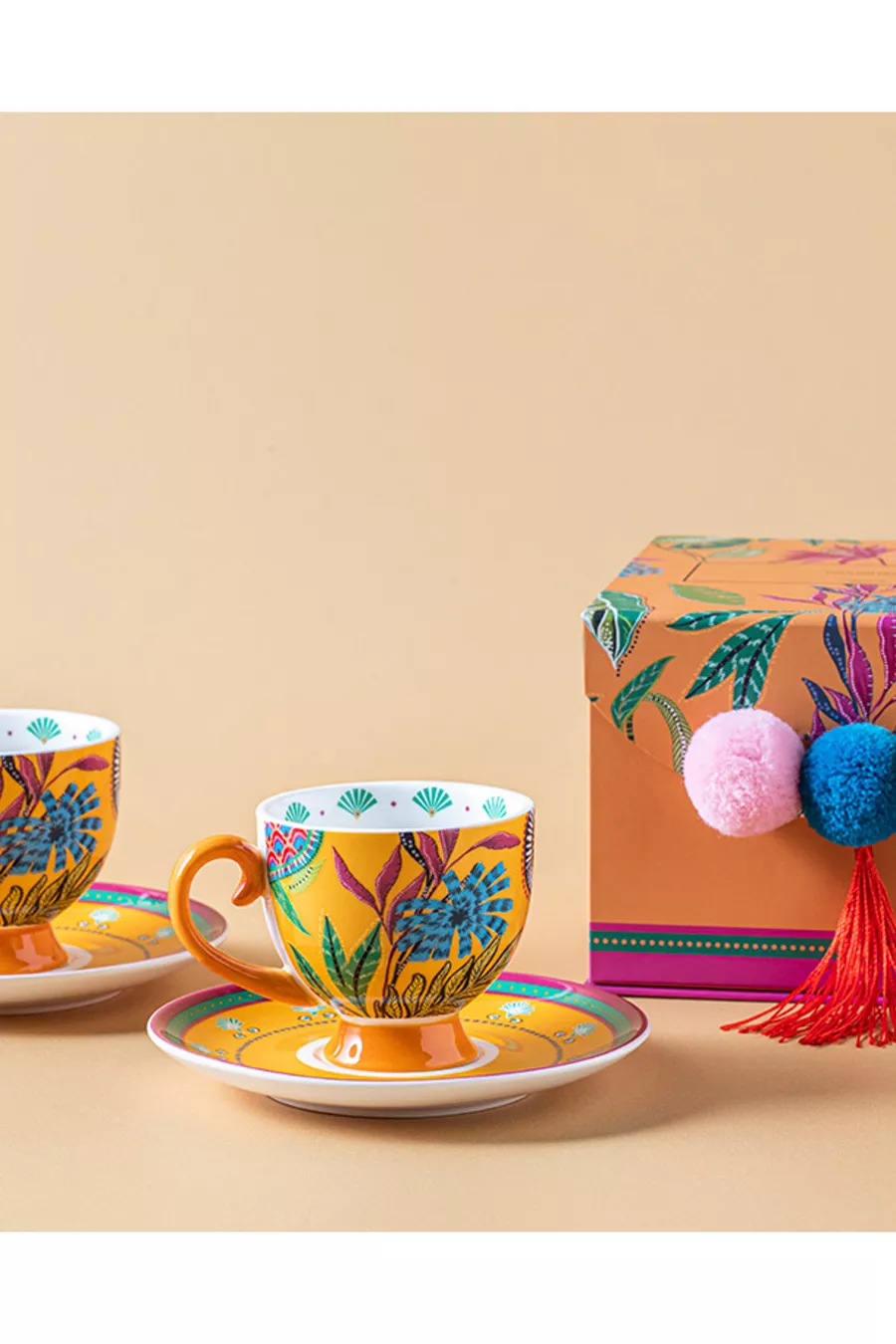 Service à café en porcelaine fine exotique sauvage, 4 pièces pour 2 personnes, jaune