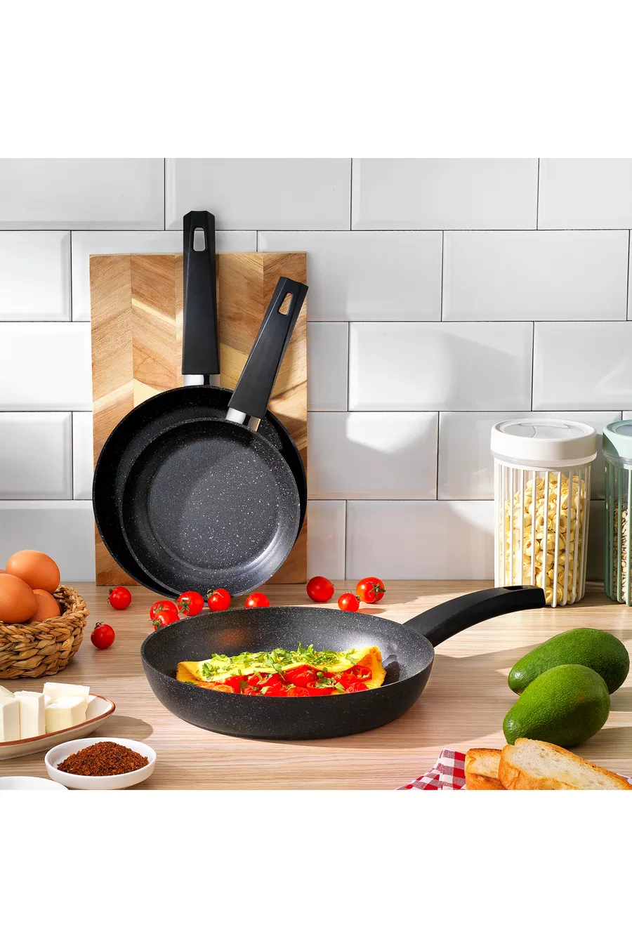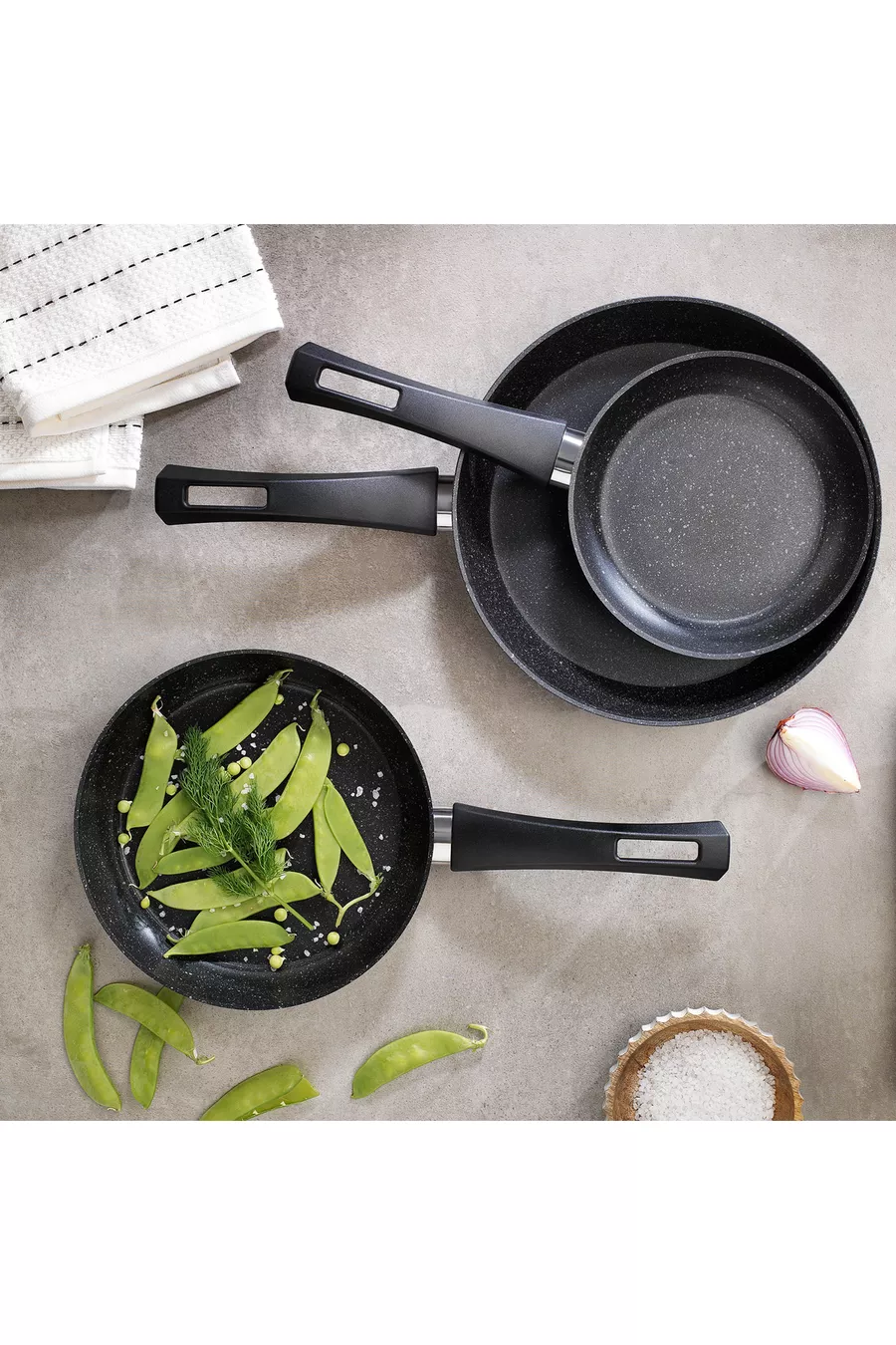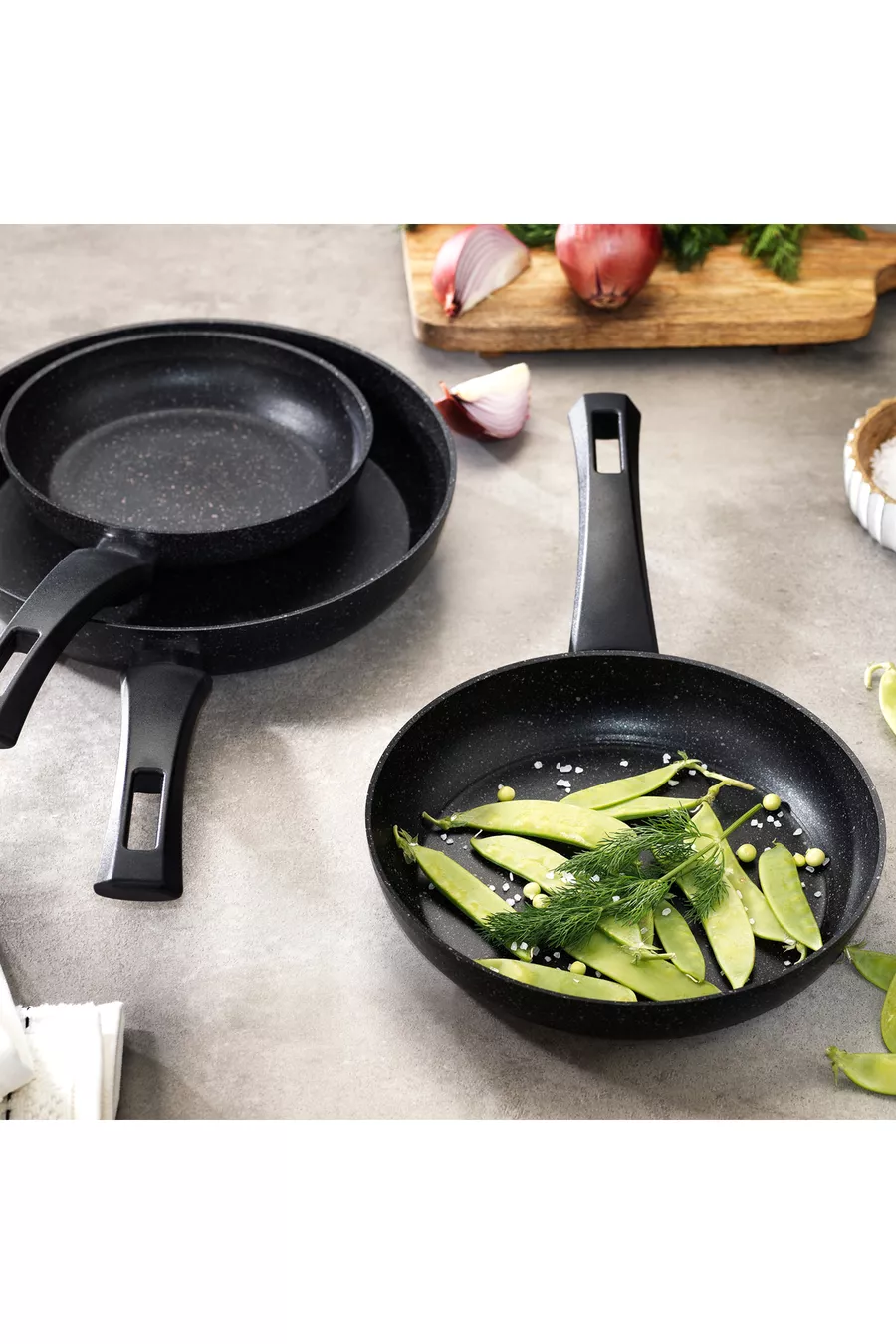 Dimensions/Taille : 26 cm Nombre de pièces : 3 Caractéristique : Sans BPA Type de produit : Poêle à frire Matériau extérieur : Granit Matériau intérieur : Granit Couleur : noir Origine : TR Matériau : Non spécifié Couleur : Noir
