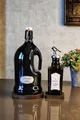 Set de 2 bouteilles d'huile d'olive italienne avec support en bois, noir, pour huile et vinaigre