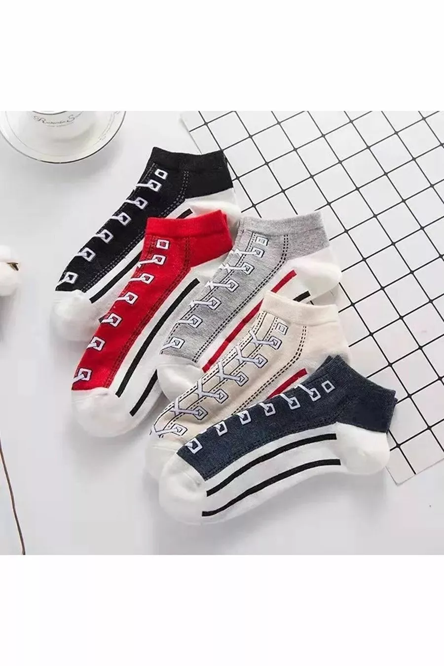 Set de 5 paires de chaussettes pantoufles unisexes colorées à motif