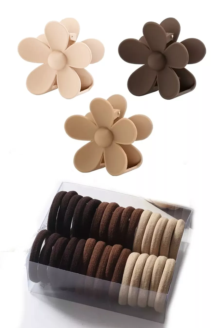 Set de 3 grandes pinces à cheveux XL pour femme + élastiques à cheveux avec motif café