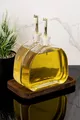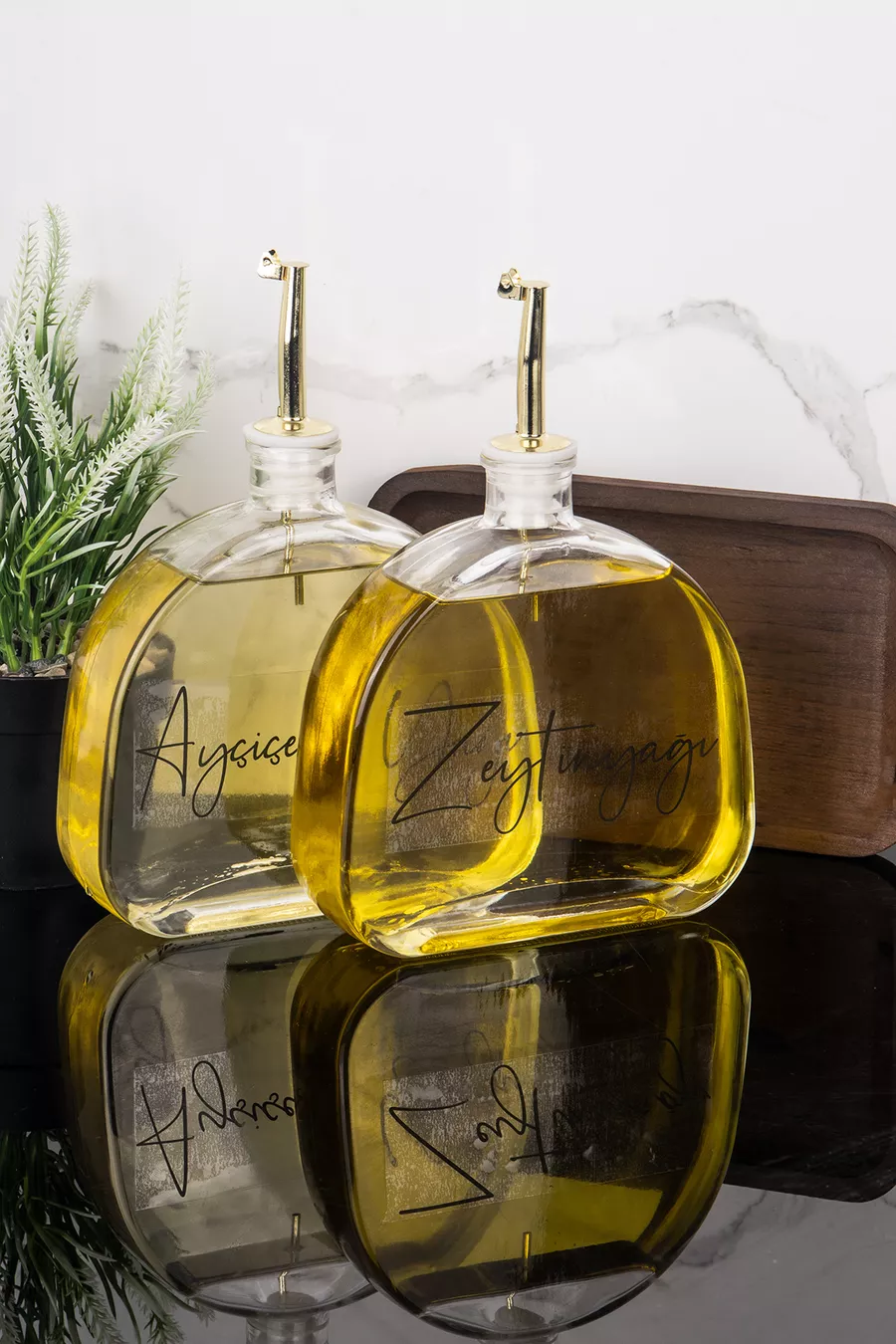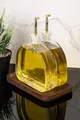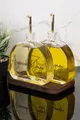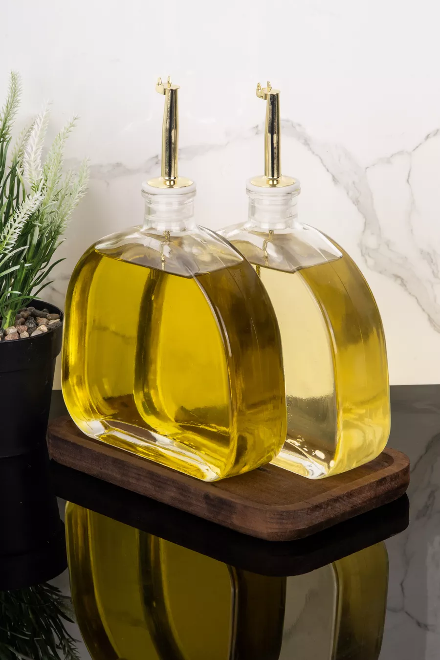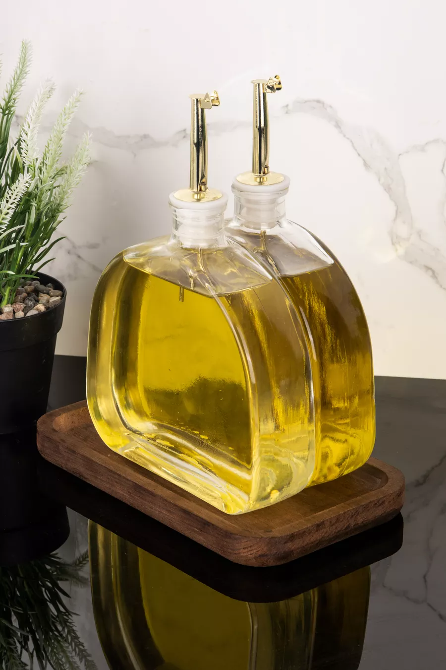 Set de 2 huiliers de luxe avec support en bois, bouchon doré, en verre pour huile d'olive, huile de tournesol, sauce et vinaigre
