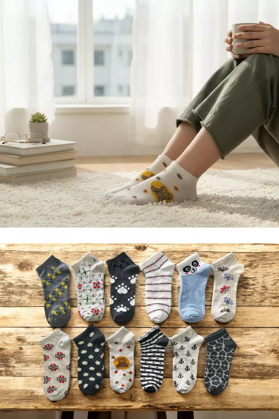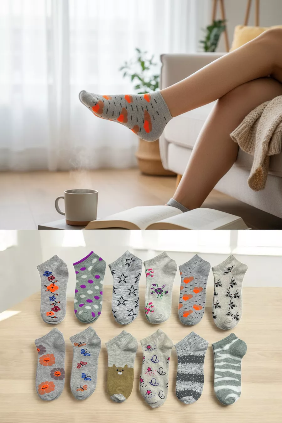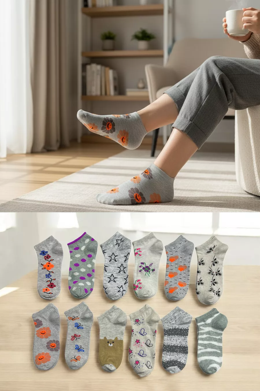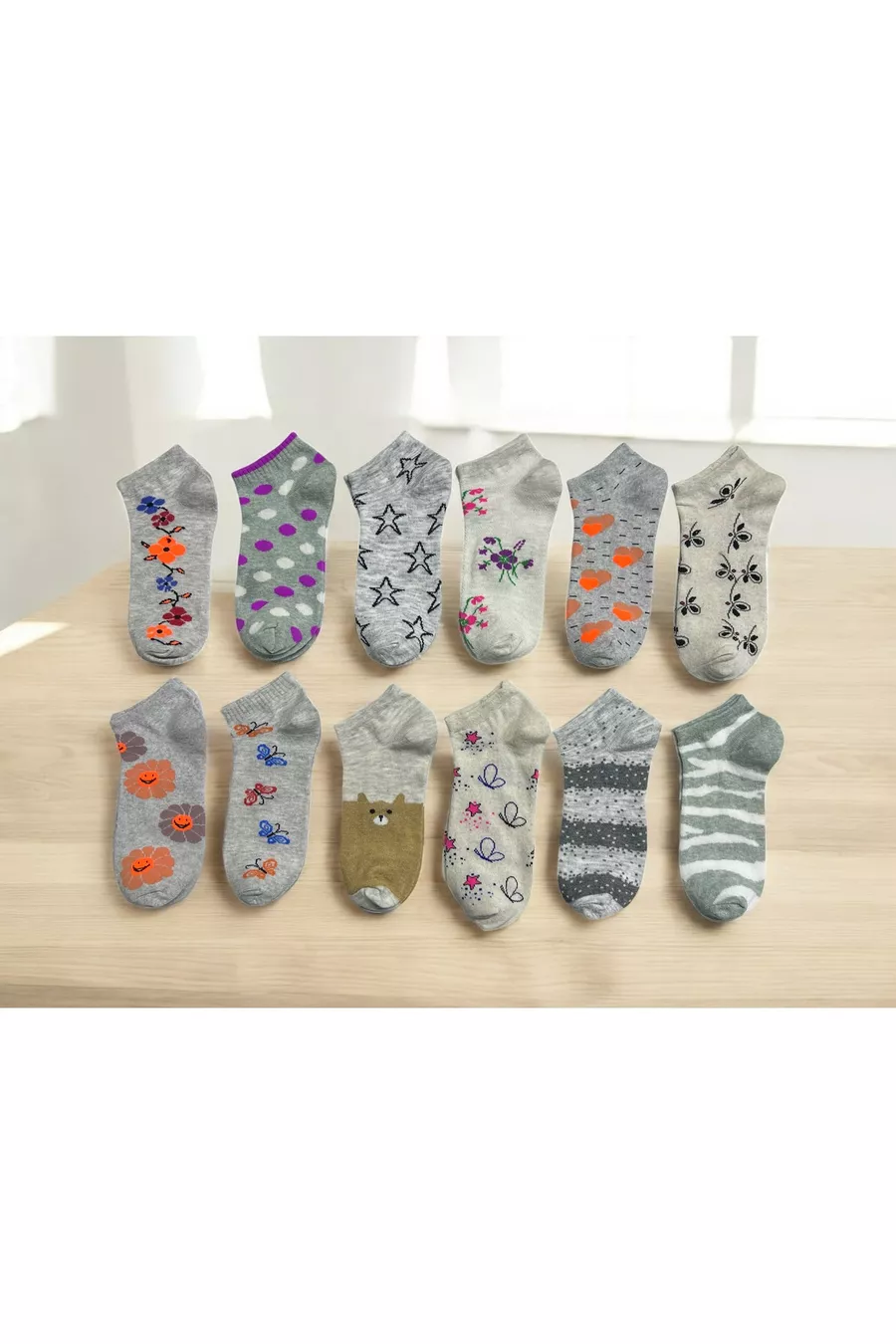 Set de 8 Chaussettes Basses en Coton Pour Femme, Motif, Confortables et Respirantes, Couleur Claire