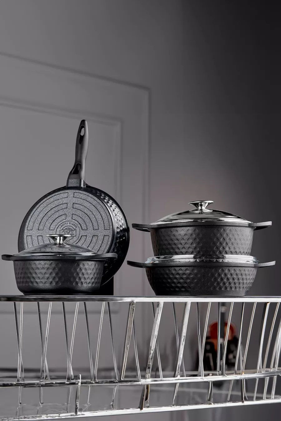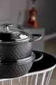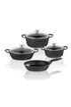 Couleur : Noir Taille/Dimensions : 24 cm Capacité : 2 L Caractéristique : Fond antiadhésif Matériau extérieur : Fonte Matériau intérieur : Fonte Nombre de pièces : 7 Matériau : Fonte