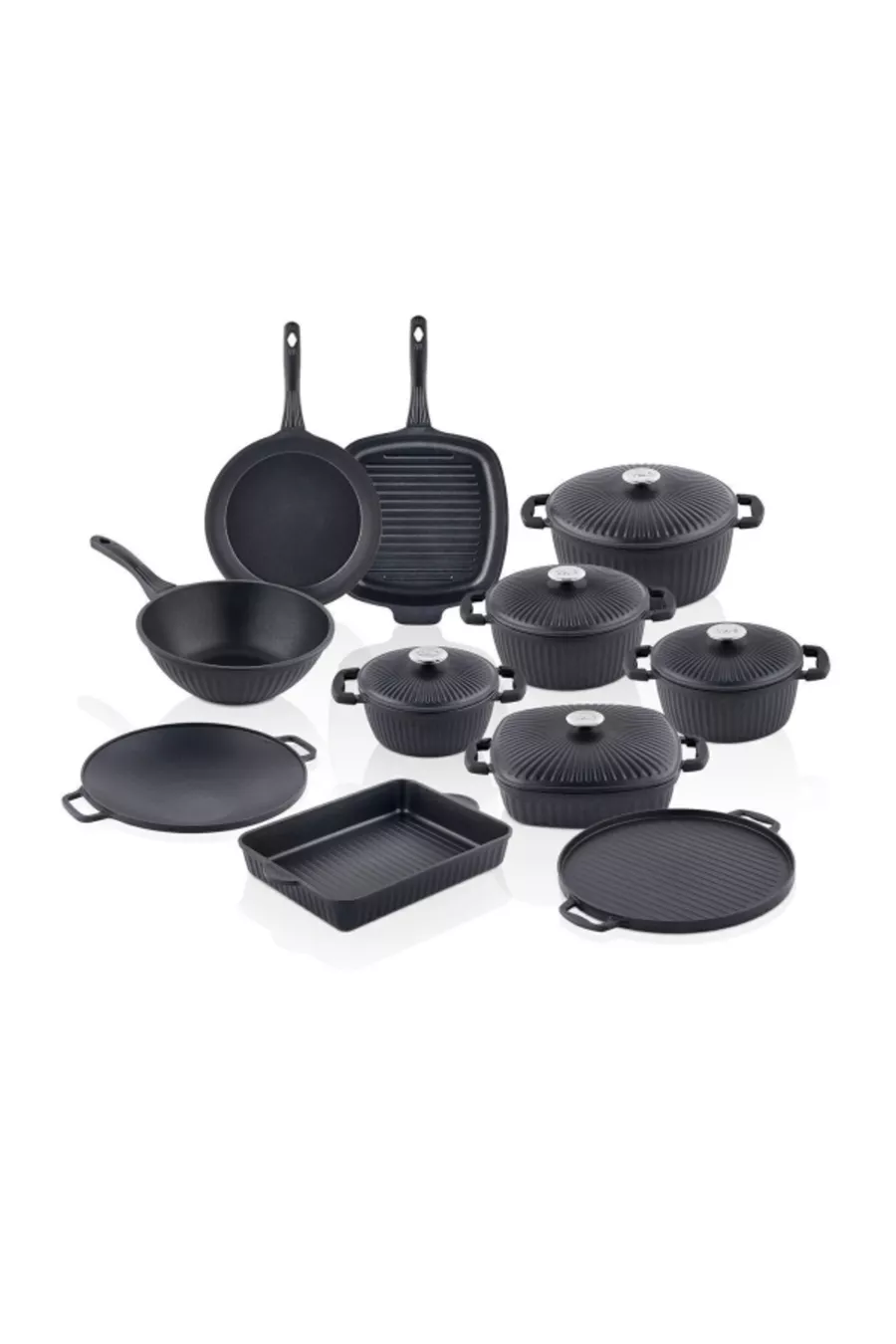 Couleur : Noir Caractéristique : Utilisable au four Matériau extérieur : Fonte Matériau intérieur : Fonte Nombre de pièces : 16 Matériau : Fonte