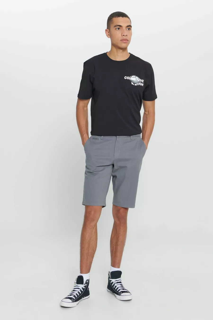 Short chino casual pour homme gris slim fit à coupe étroite en coton % armuré