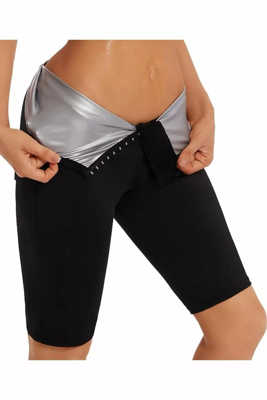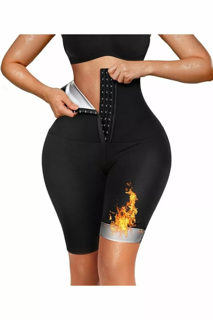 Short de sauna amincissant brûle-graisses, affinant de deux tailles, taille haute avec crochets, short thermal de sauna