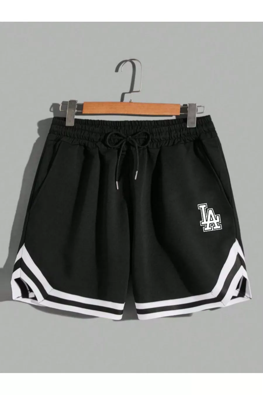 Short en coton noir pour homme, bermuda de sport avec bandes, pour basketball, football, fitness et course