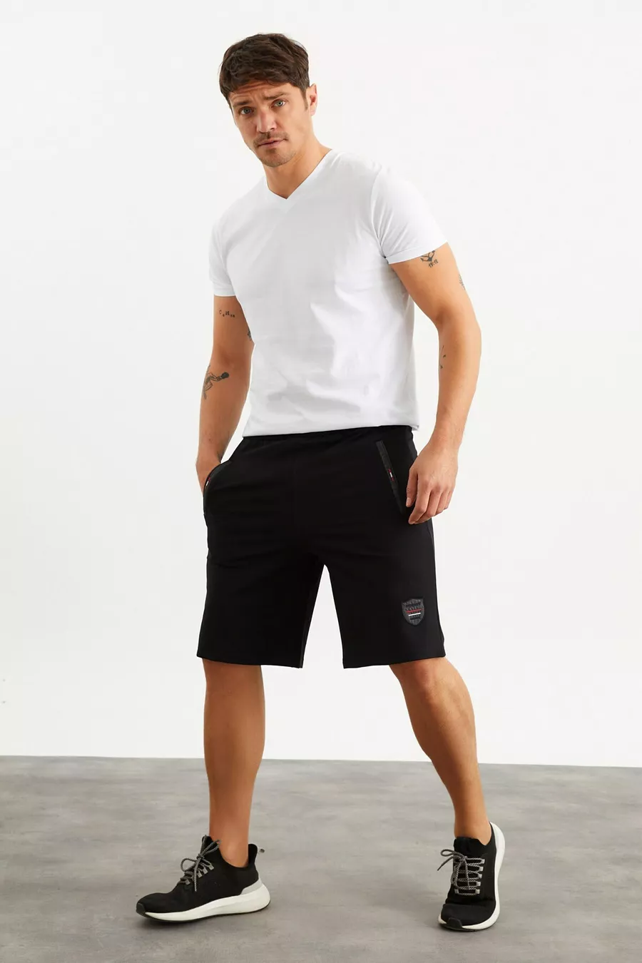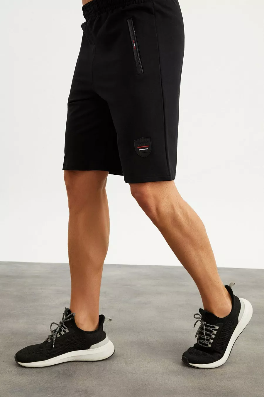 Short noir pour homme avec détails de broderie et poches