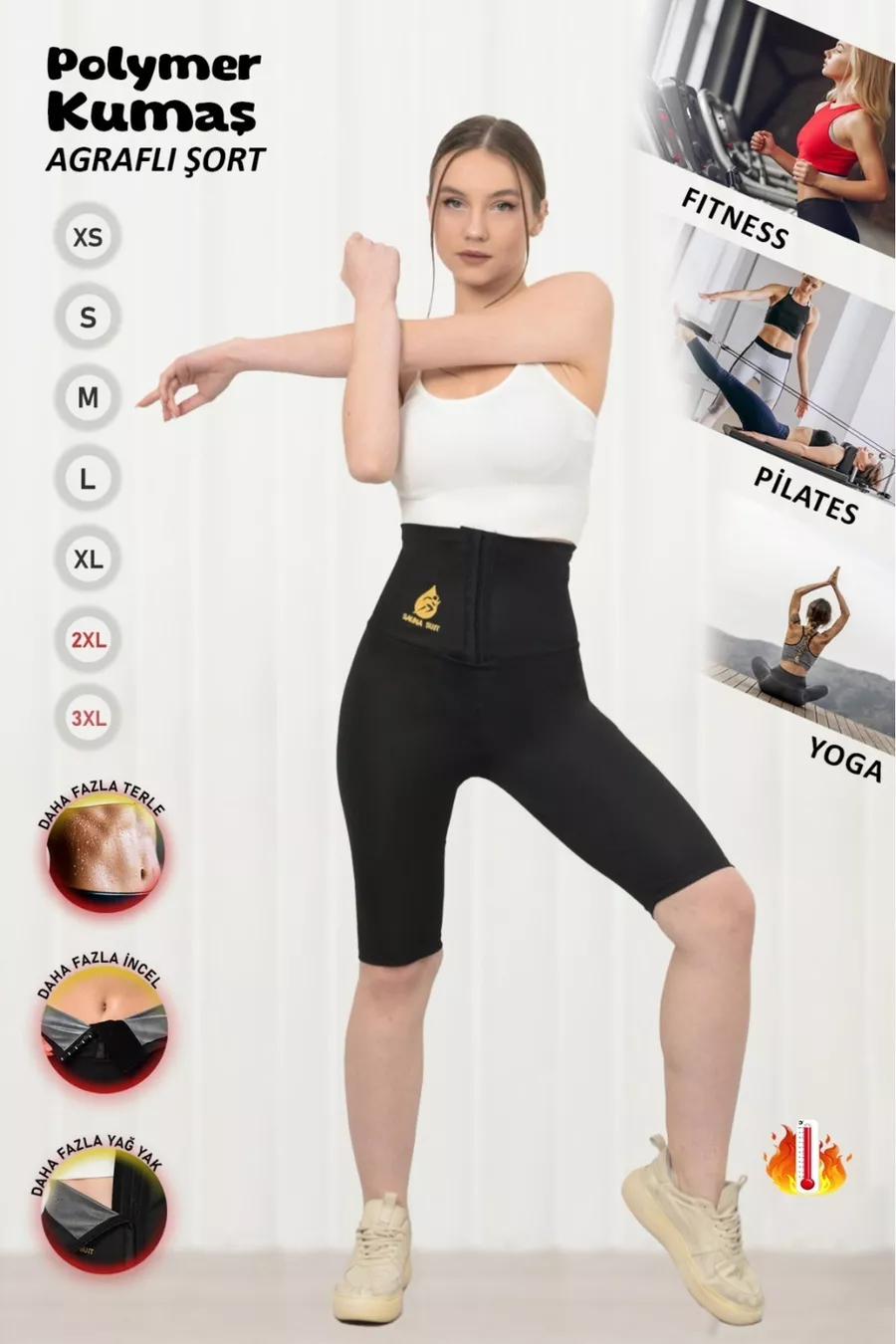 Short thermique unisexe taille très haute, fermoir à 3 niveaux, amincissant et gainant, maximisant la transpiration