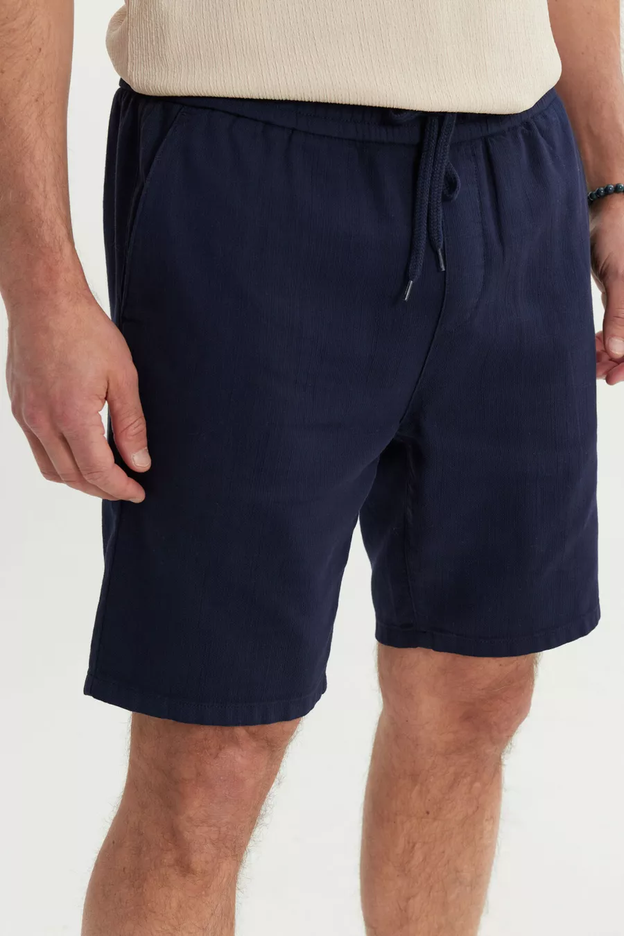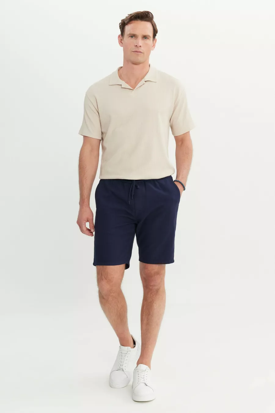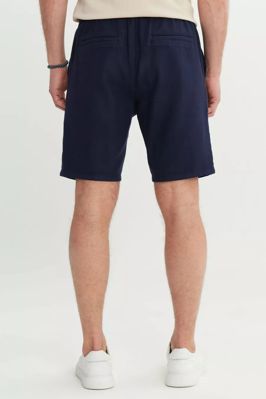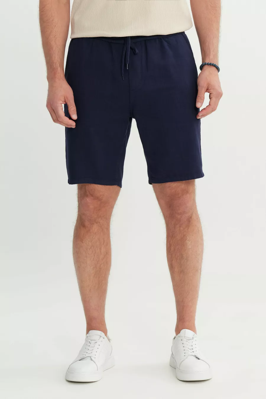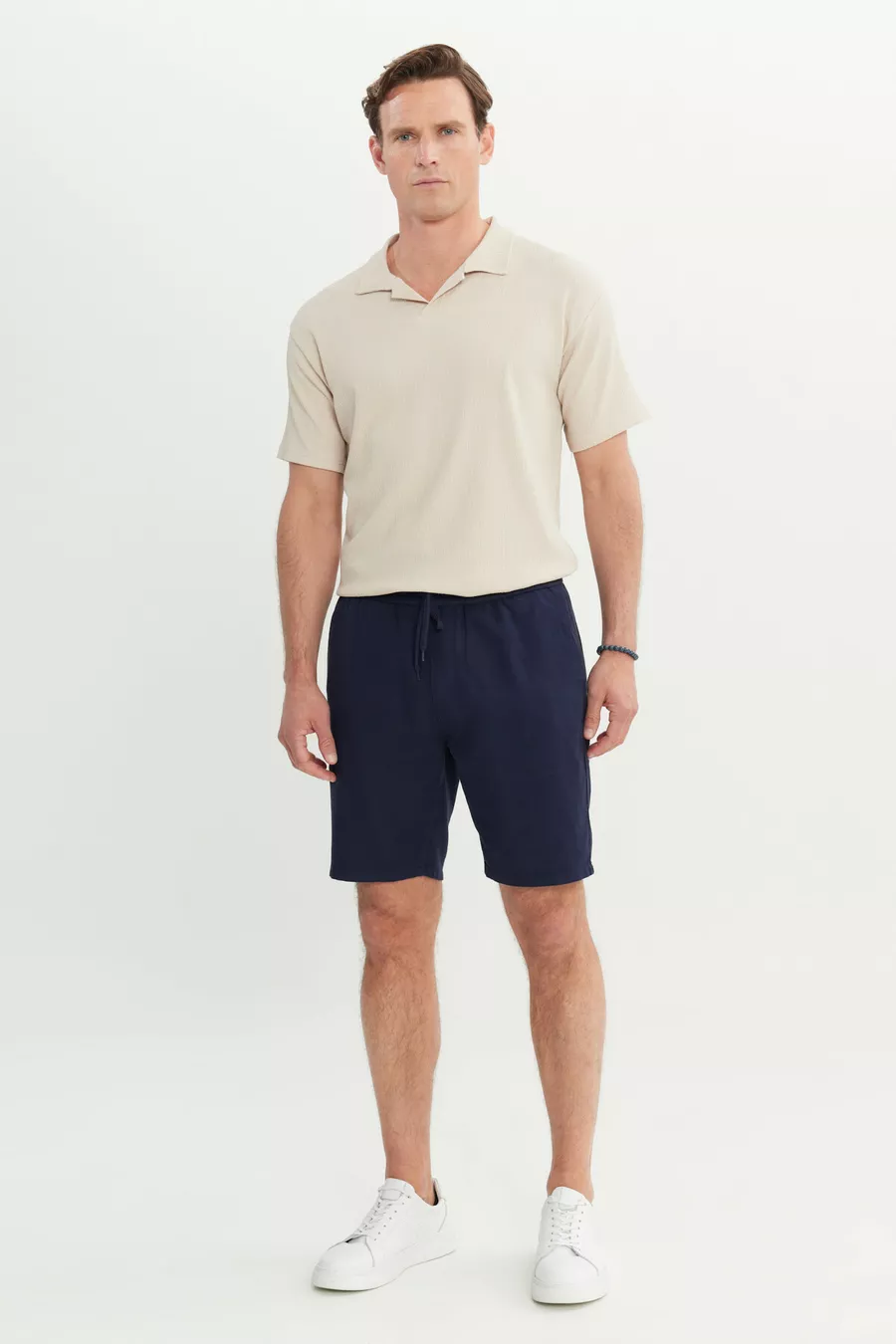 Shorts pour homme bleu marine % coton Comfort Fit avec lien à la taille et poches latérales fendues