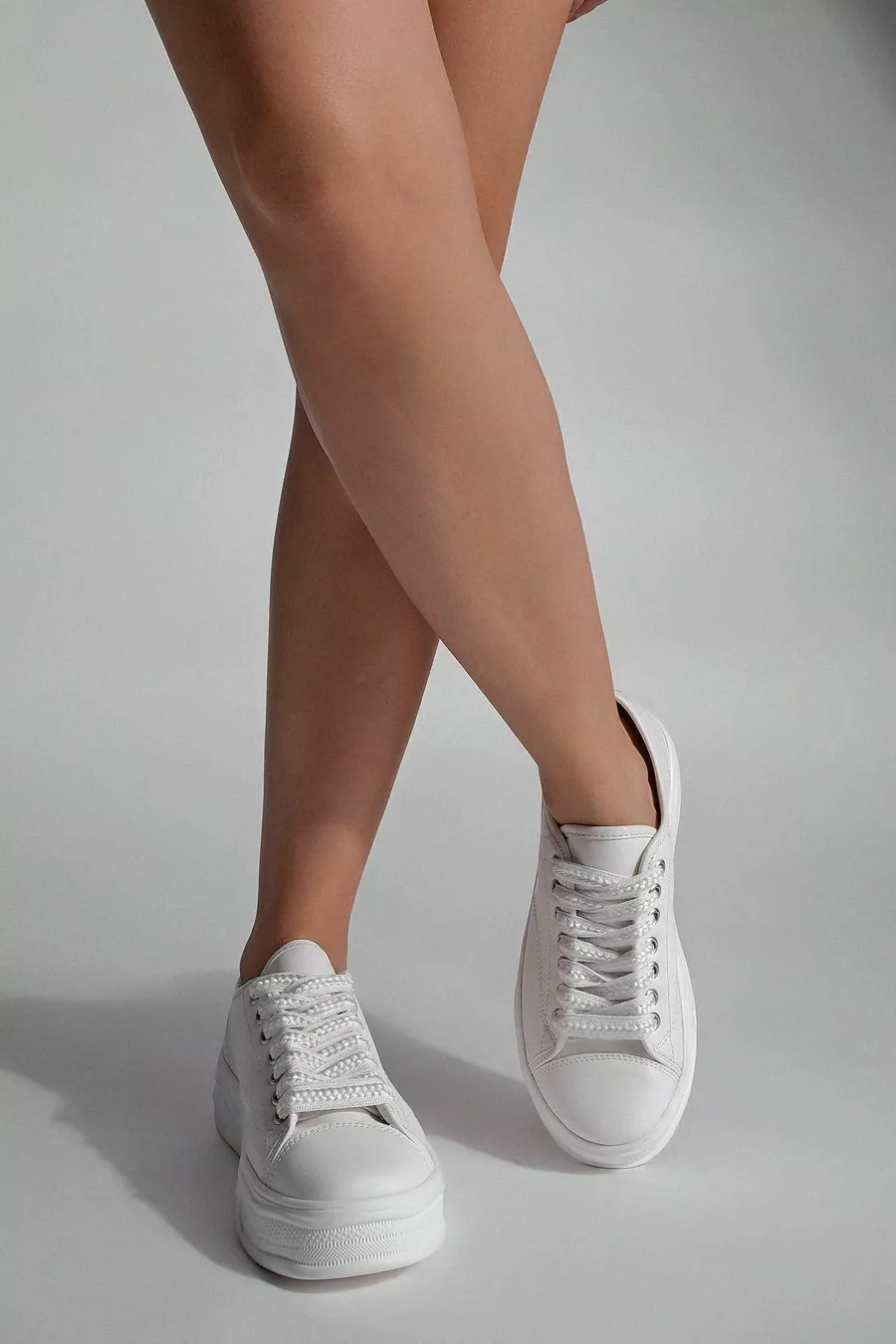 Sneaker femme à motif semelle épaisse Sneakers encapsulées Timas Blanc