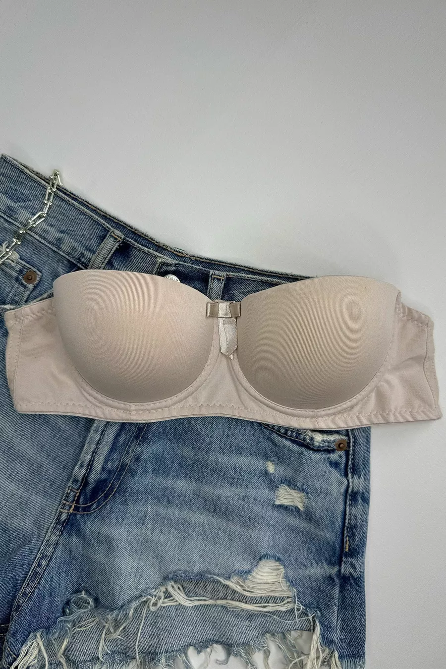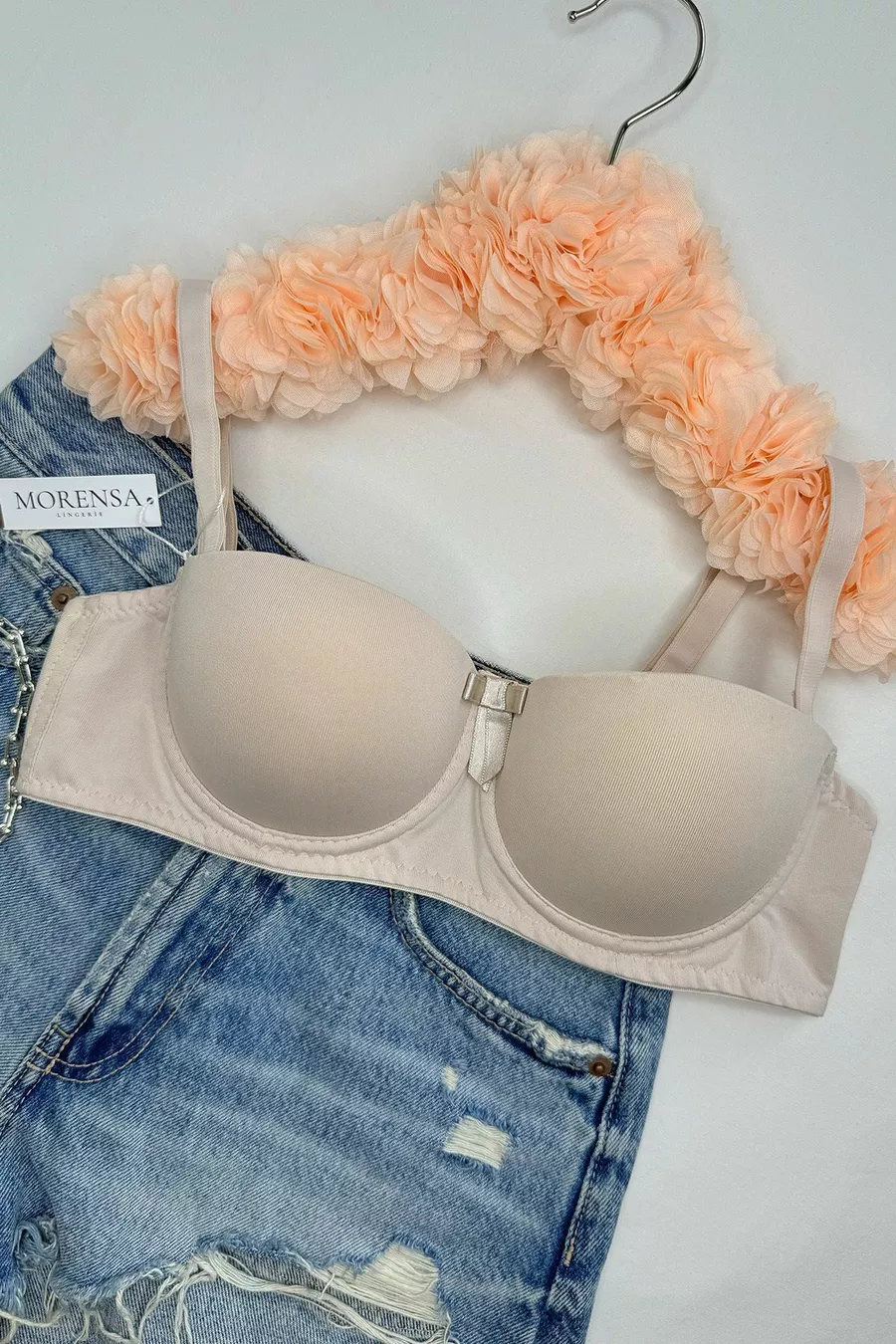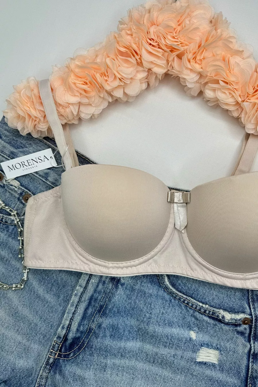 Soutien-gorge gainant à armatures avec maintien et bretelles amovibles pour femme, couleur beige
