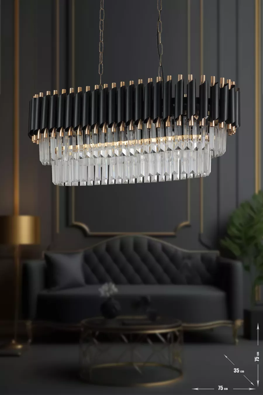 Matériau : Métal Modèle : Avec pierres Type de douille : E14 Nombre d'ampoules : 6 Couleur : Noir Dimensions : 74 x 32 Hauteur : 71 - 80 cm Usage : Salon / Salle de séjour Origine : TR