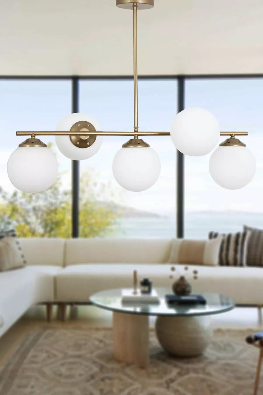 Matériel : Métal Modèle : Moderne Type d'ampoule : E27 Nombre de douilles : 5 Couleur : Blanc Dimensions : 10 x 18 Hauteur : 71 - 80 cm Zone d'utilisation : Salon / Salle de séjour Origine : TR Caractéristique : Long