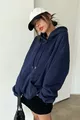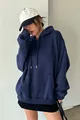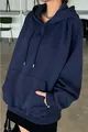 Sweat à capuche oversize pour femme, bleu marine uni, en tissu bouclette 3 fils, coupe ample et décontractée