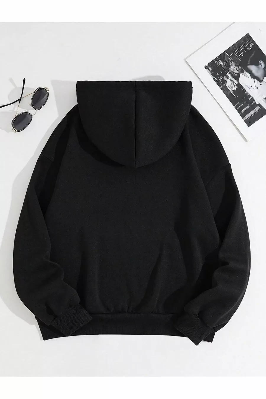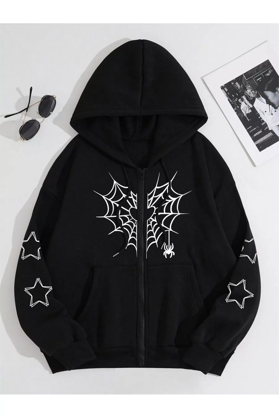 Sweat-shirt à capuche Étoile Spider en maille avec zip - Noir imprimé, oversize, poches, pour l'hiver