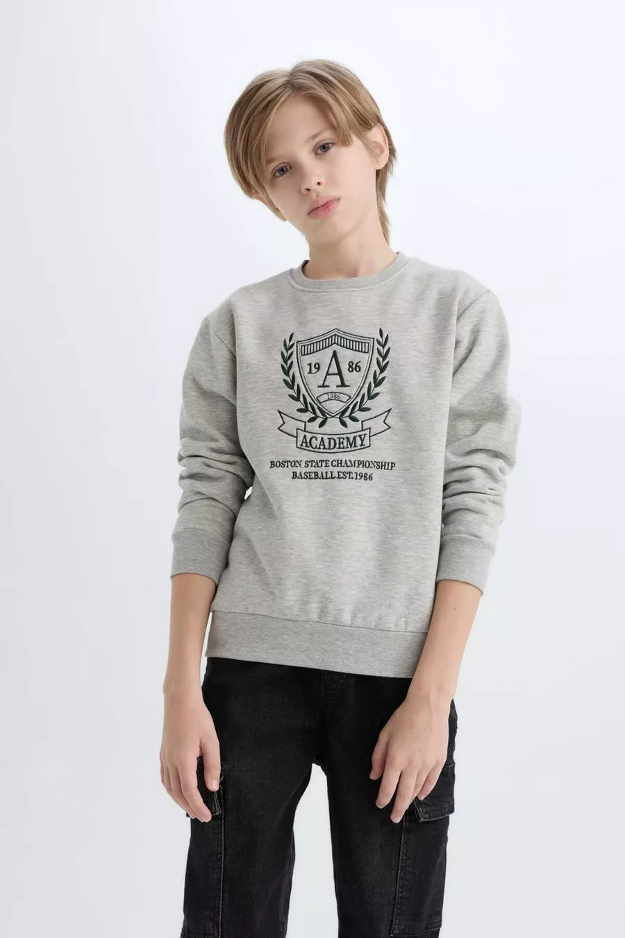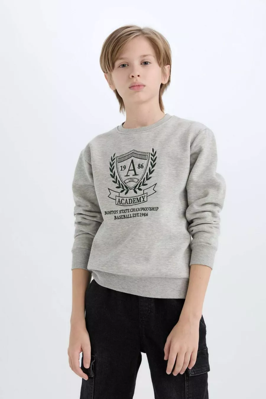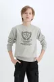 Sweat-shirt pour garçon à col rond avec motif et intérieur en tissu doux CW