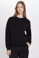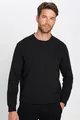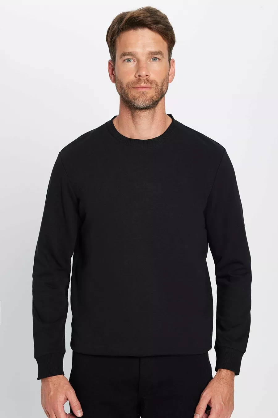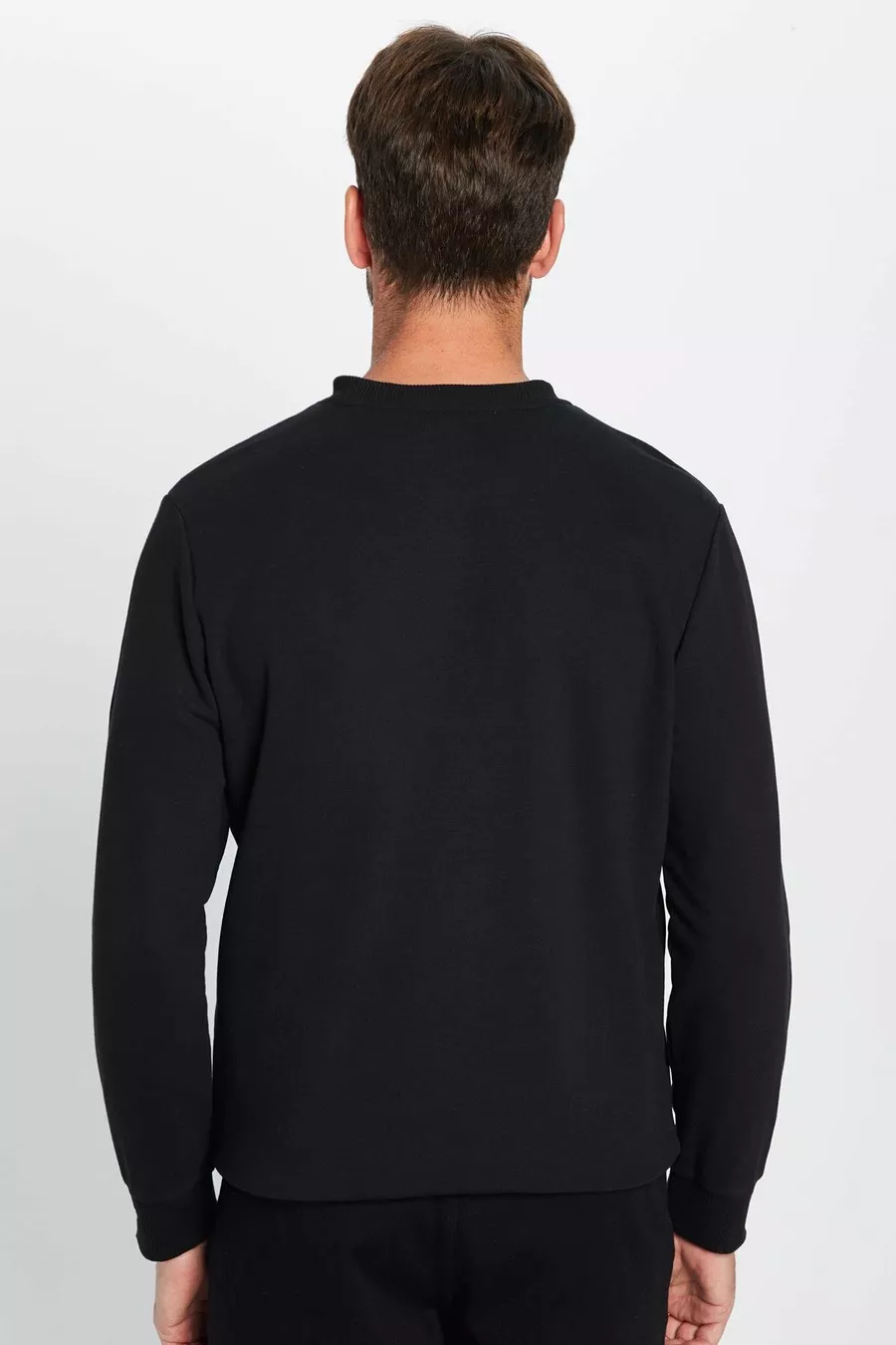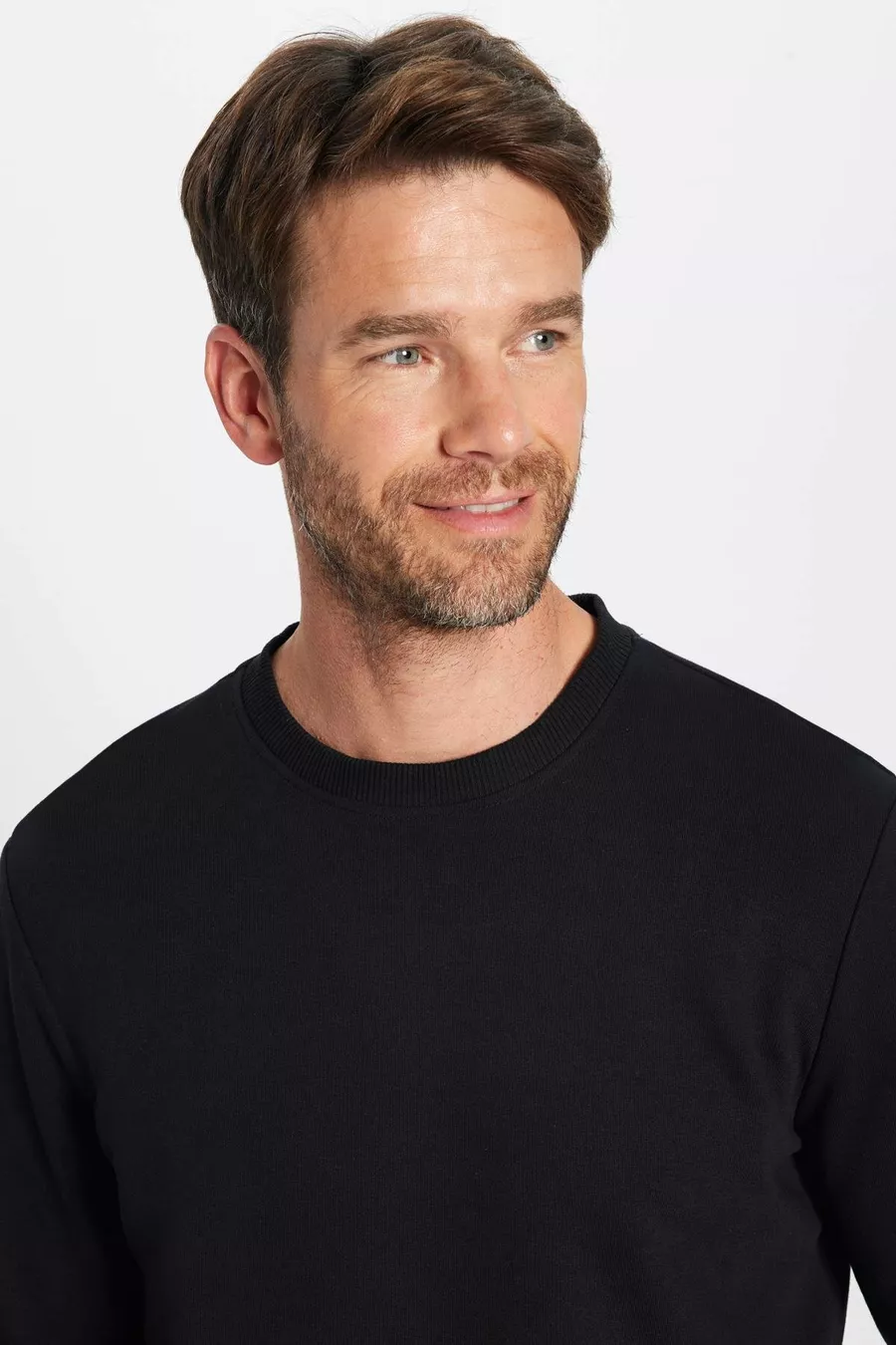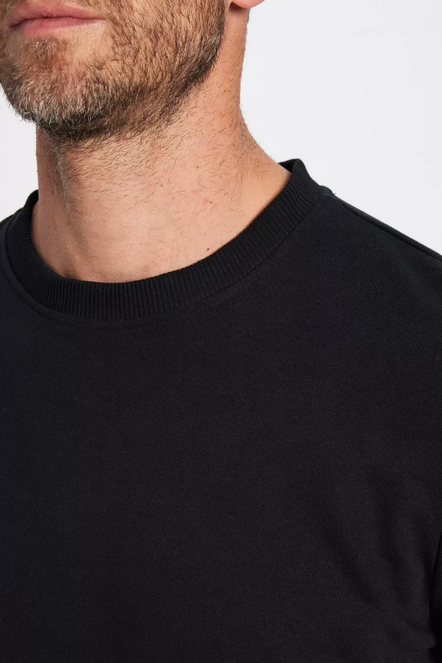 Sweatshirt basique noir à col rond unisexe, coupe décontractée, en coton doux avec intérieur polaire
